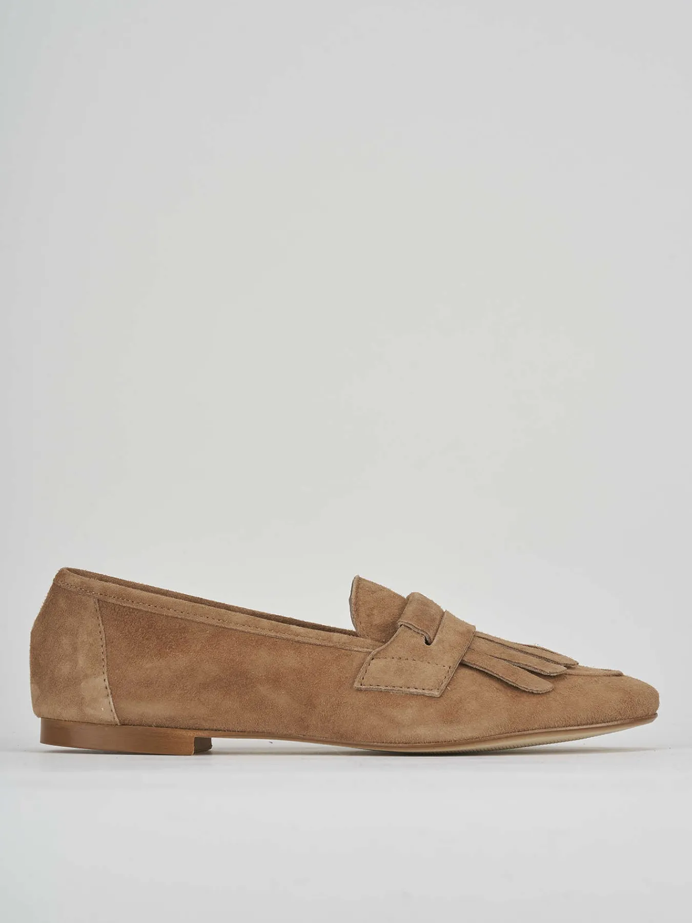 Realizzati in morbido camoscio marrone, questi mocassini dal tacco di 1 cm offrono una comodità senza pari.
