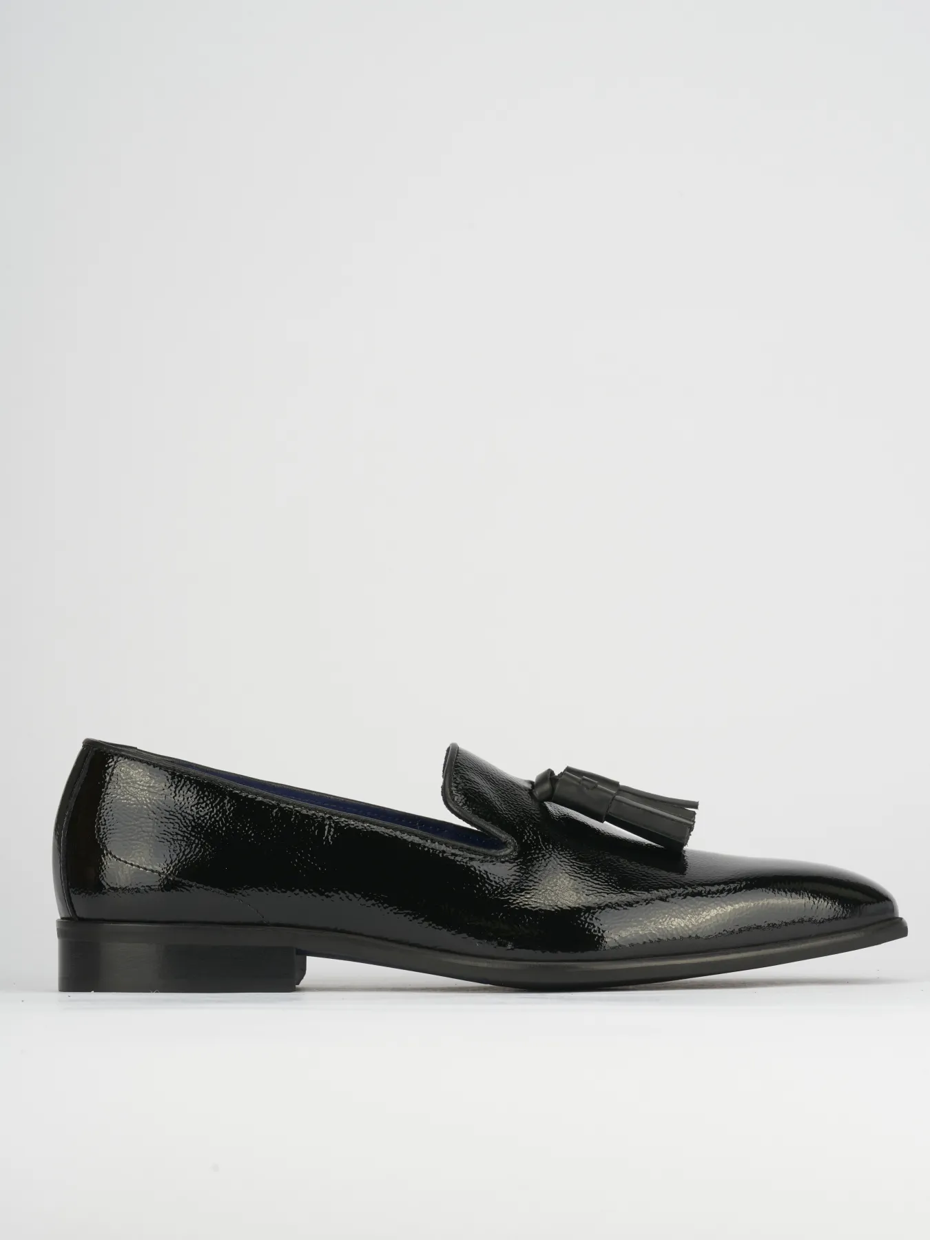 La tomaia in morbida pelle verniciata dona un aspetto raffinato, arricchito da nappine che aggiungono un tocco di classe.