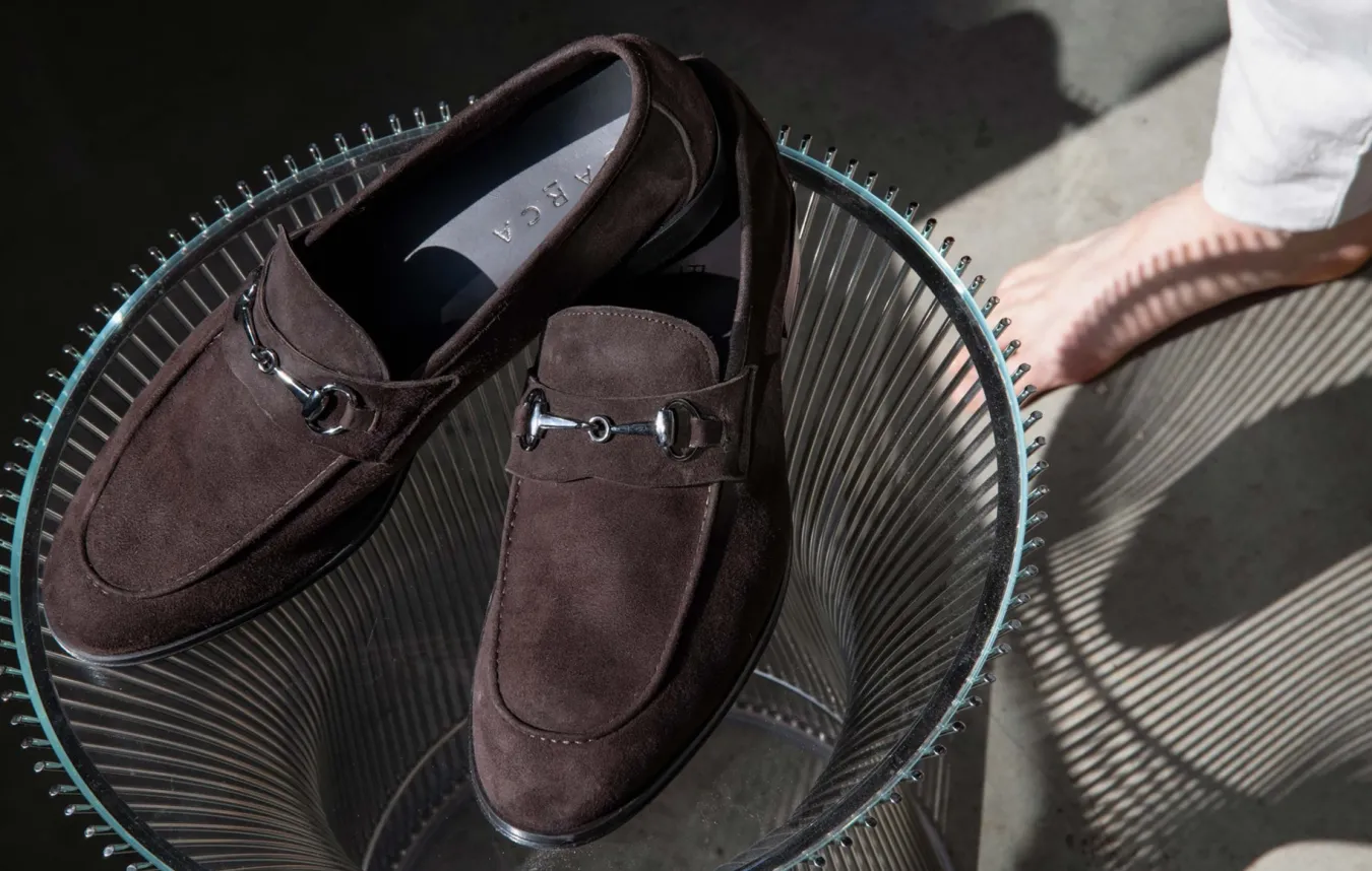 mocassino tacco 2 cm fondo in gomma e soletto interno in vera pelle. Tomaia in morbidissimo camoscio con bellissimo morsetto in acciaio sul collo del piede per un tocco cool alla scarpa elegante per eccellenza.