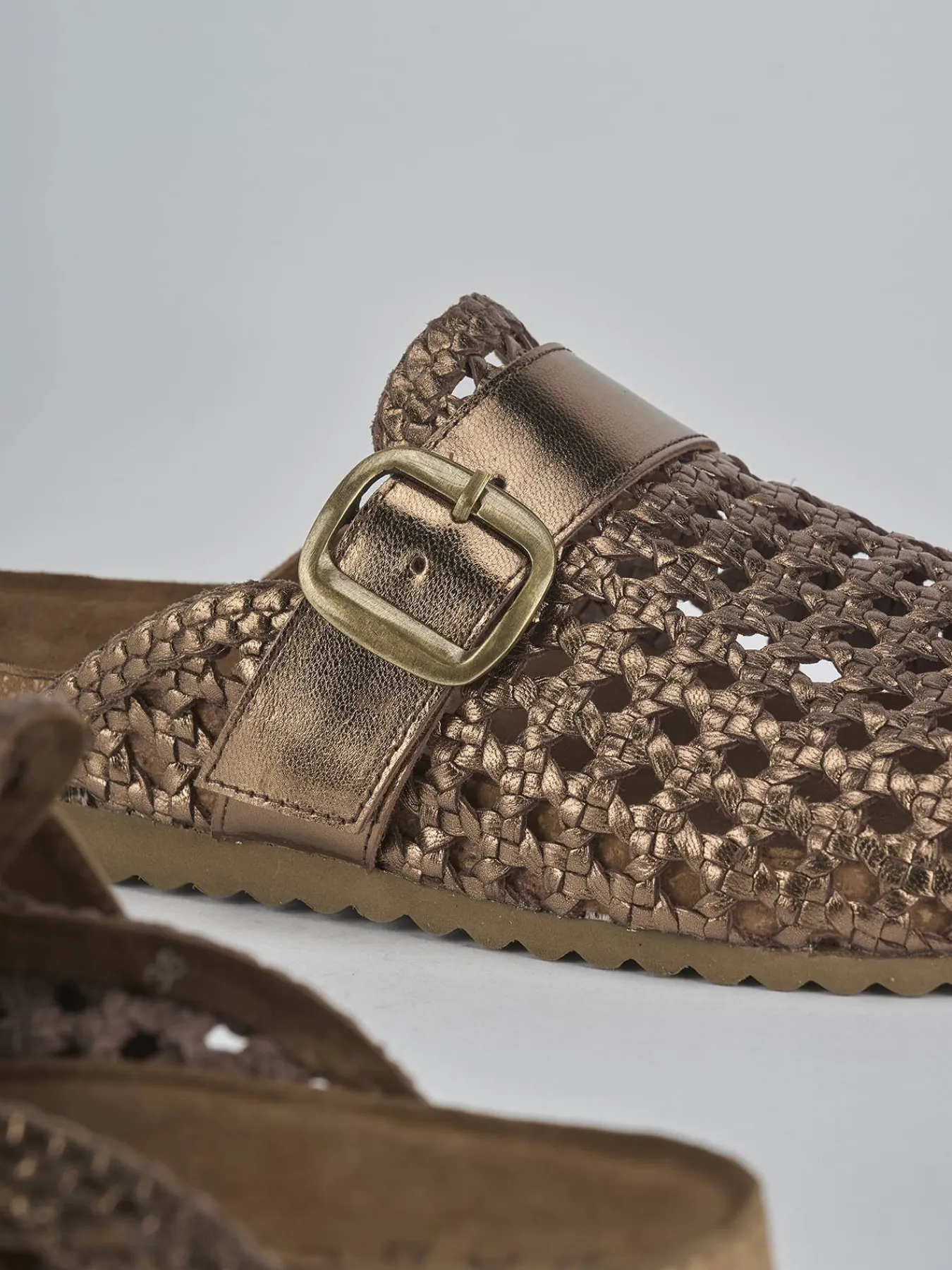 La tomaia in morbida pelle intrecciata a rete dona un tocco di eleganza e freschezza al tuo look quotidiano.