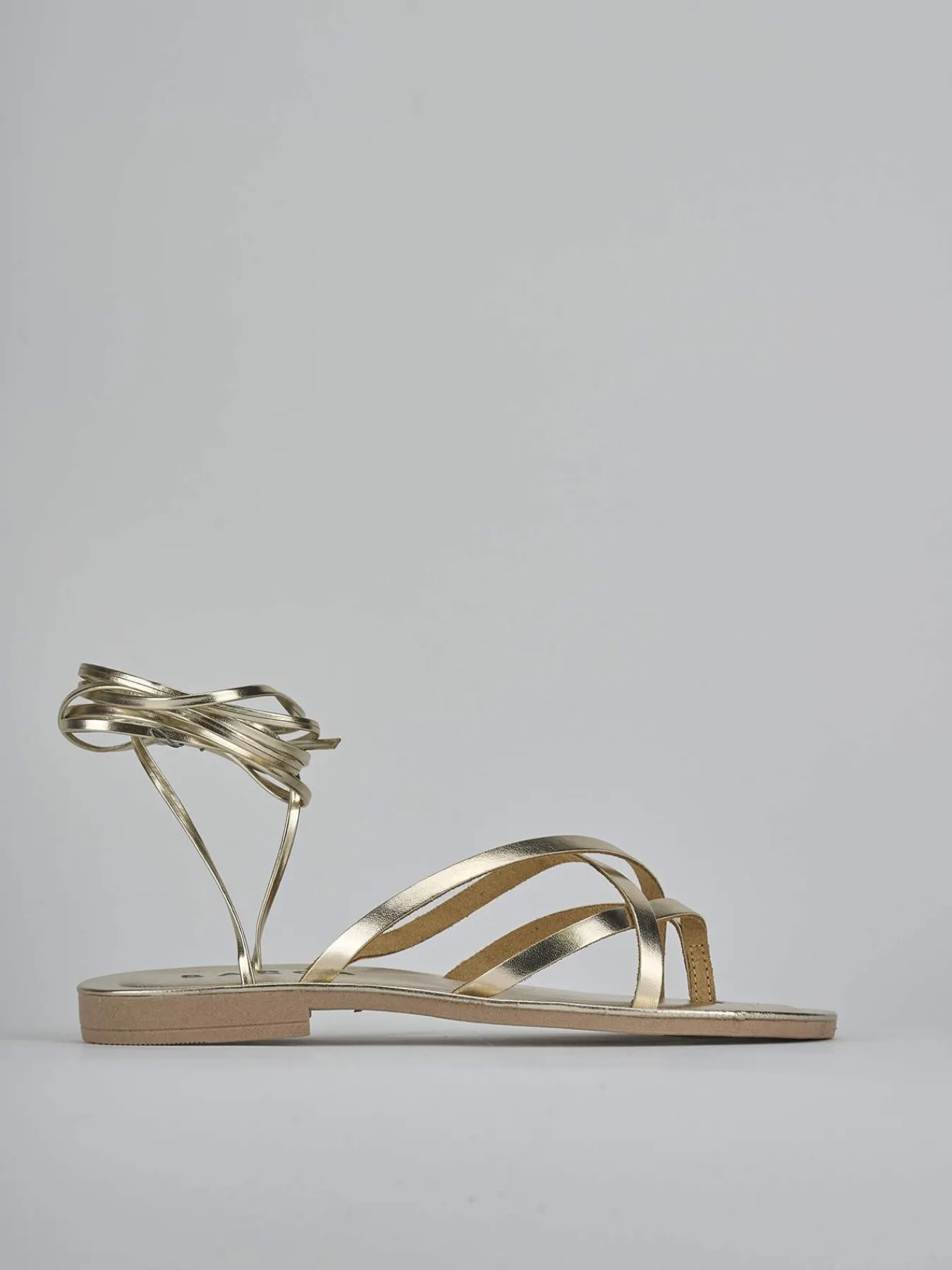 La tomaia è realizzata in morbida pelle, arricchita da fasce doppie incrociate a gabbietta che aggiungono un tocco sofisticato al look.