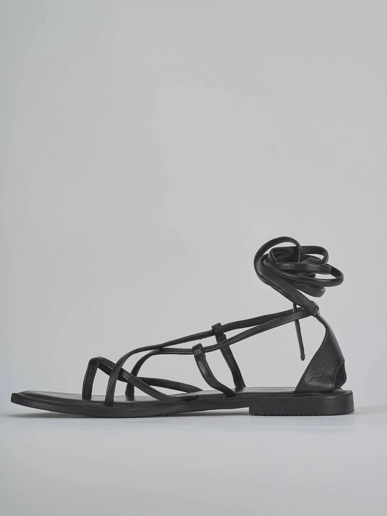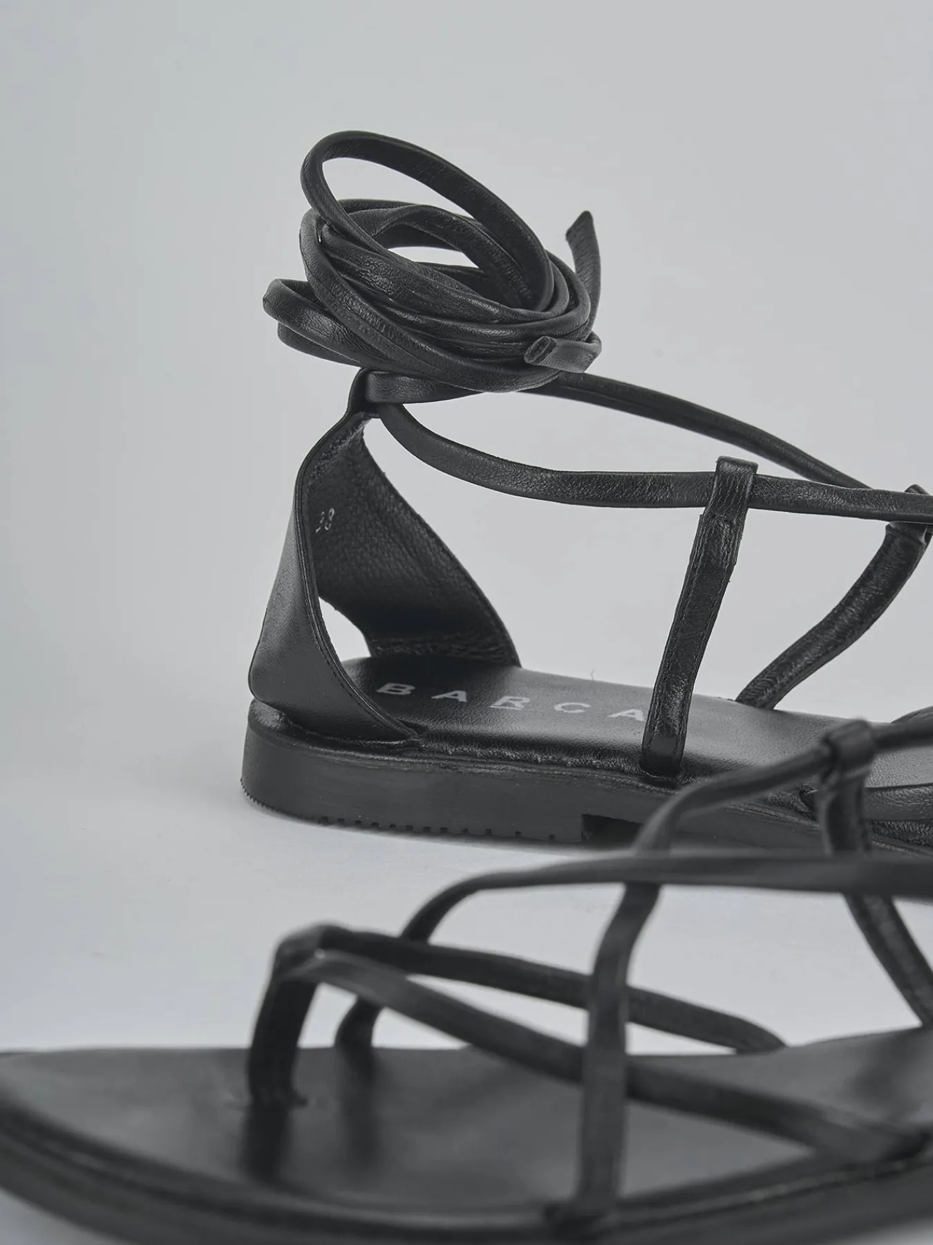 La tomaia è realizzata in morbida pelle nera, con fascette incrociate che donano un tocco sofisticato.