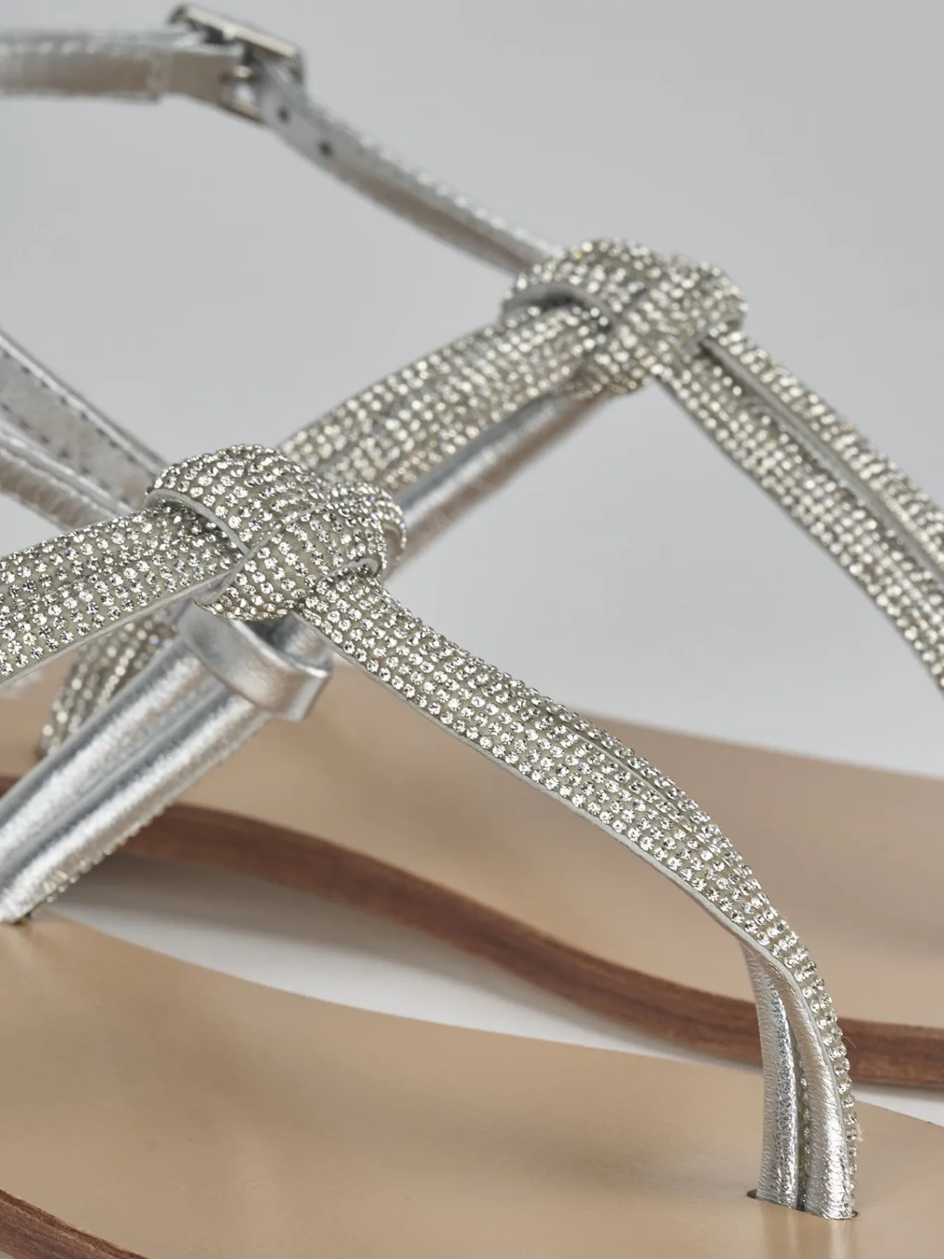 Realizzati con una raffinata tomaia in morbida pelle, questi sandali sono arricchiti da luminosissimi ministrass che donano un tocco di eleganza discreta.