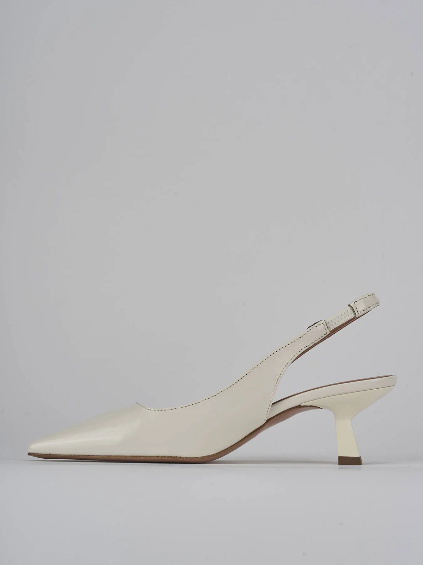Slingback decolte’ tacco 5.5 cm fondo in cuoio e soletto interno in vera pelle. tomaia in morbida pelle effetto verniciato, punta sfilata, scollo squadrato, cinturino elasticizzato per una calzata su misura. Nuovissimo tacco rocchetto per una maggiore stabilità. dal design versatile che dura nel tempo.