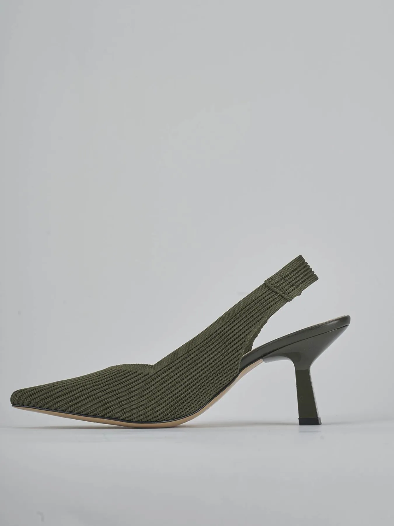 Slingback decolte’ tacco 7 cm fondo in leggerissima gomma e soletto interno in vera pelle. Tomaia in morbida pelle foderata in tessuto, punta sfilata, scollo cool, cinturino elasticizzato e spesso che avvolge il tallone e nuovissimo tacco rocchetto in ABS per un look che non ti farà passare inosservata.