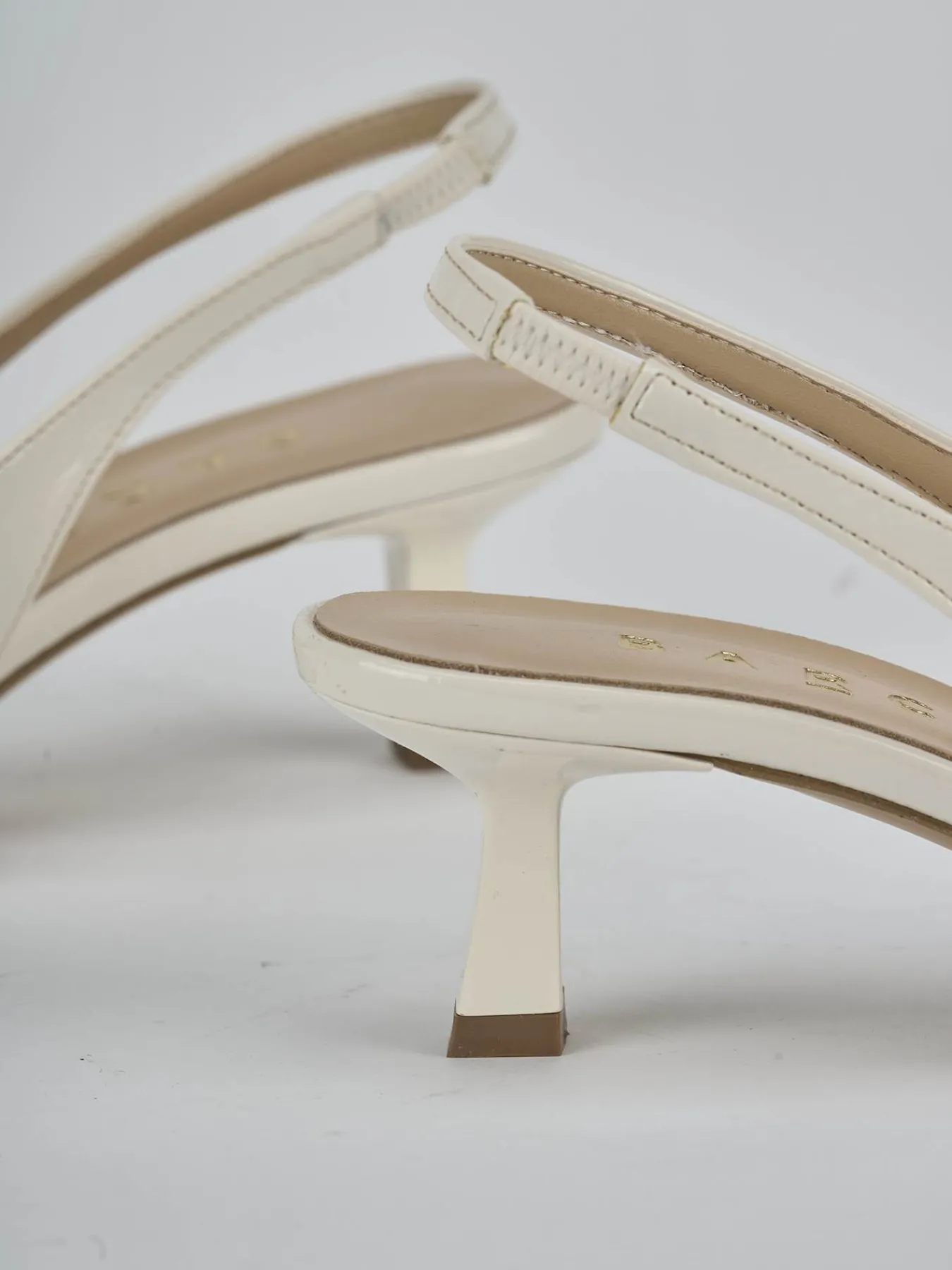 Slingback decolte’ tacco 7 cm fondo in leggerissima gomma e soletto interno in vera pelle. Tomaia in morbida pelle effetto verniciato, punta sfilata, fibbia regolabile, borchie, cinturino elasticizzato per il massimo del comfort. Nuovissimo tacco rocchetto.