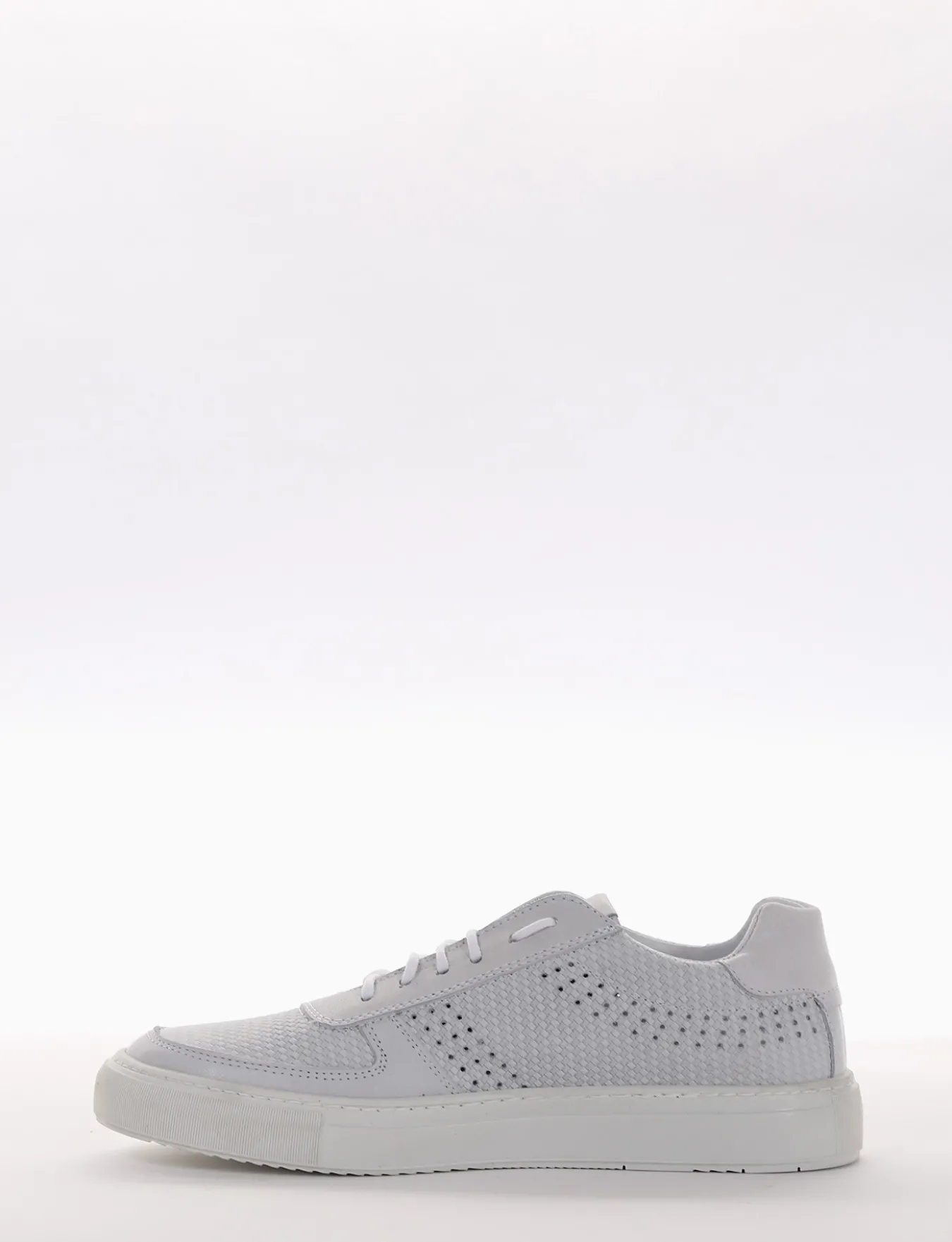 sneakers fondo in gomma e soletto interno in vera pelle. Tomaia in morbidissima pelle nappata intrecciata con particolarissima foratura su entrambi i lati, ideale per il tuo tempo libero.