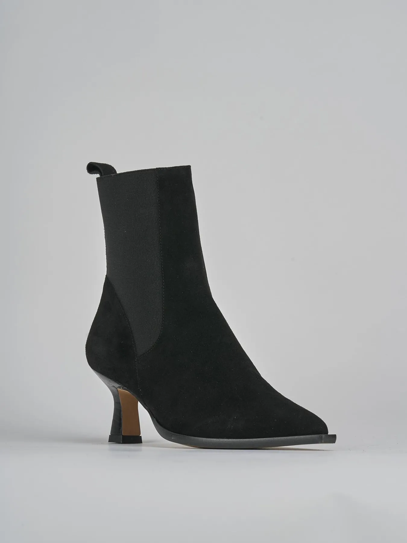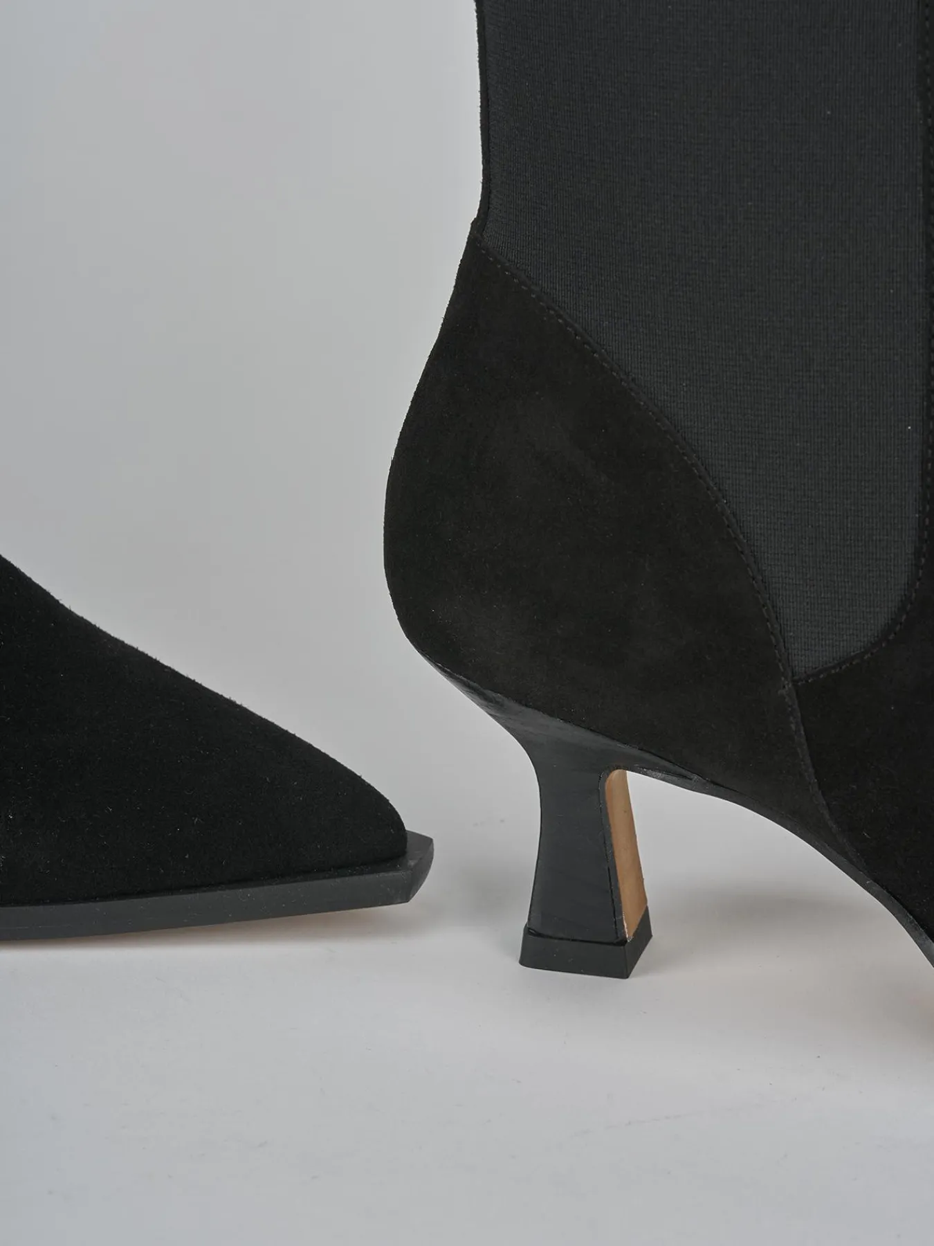 Realizzati in morbida pelle scamosciata, questi stivaletti presentano una punta sfilata e cuciture visibili che aggiungono un dettaglio sofisticato.