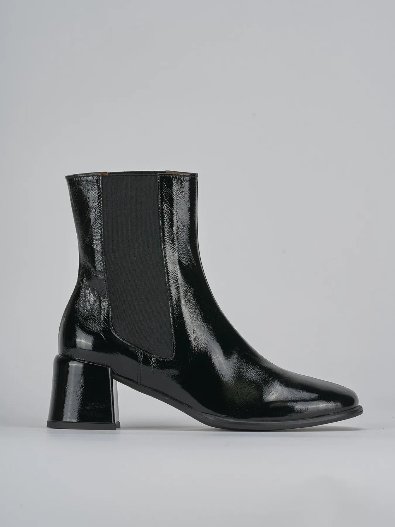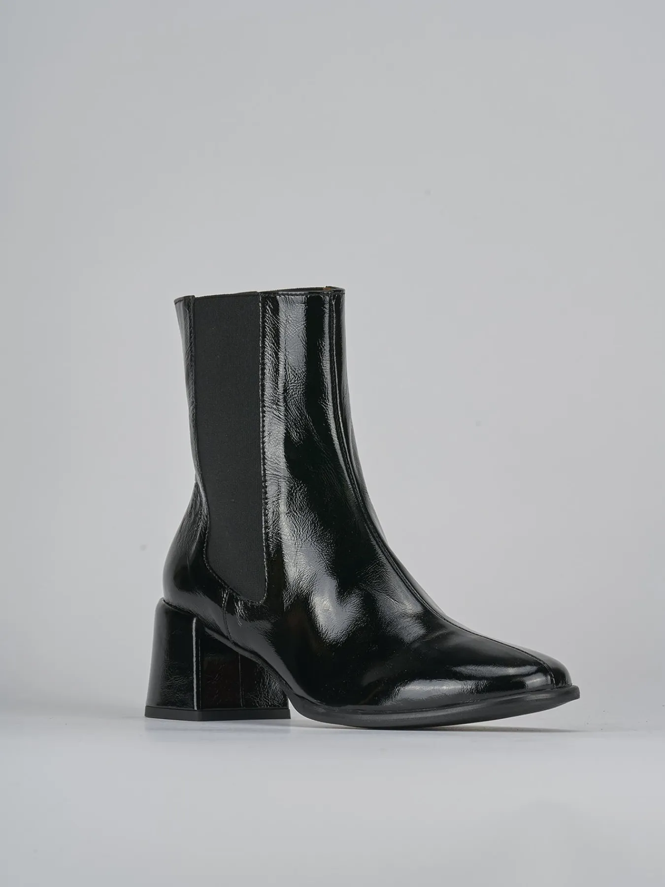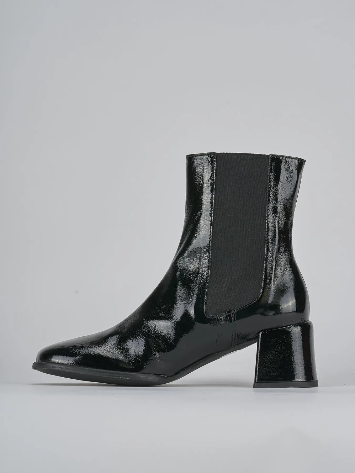 La tomaia in morbida pelle effetto verniciato dona un tocco di lucentezza chic, mentre la punta affusolata aggiunge un dettaglio raffinato.
