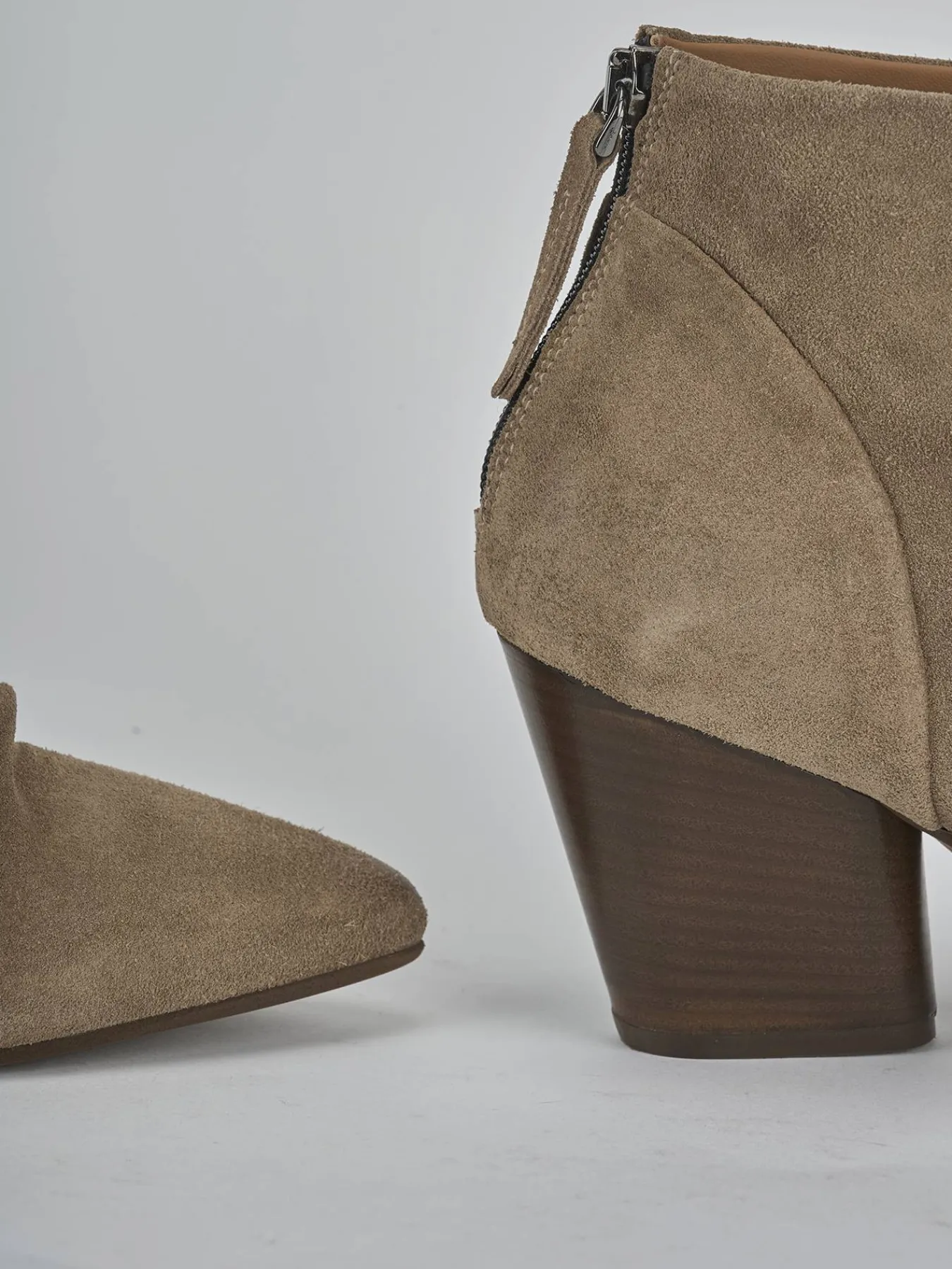 Stivaletto tacco 7 cm fondo in leggera gomma e soletto interno in vera pelle. Tomaia in morbido camoscio, punta sfilata, arricciato leggermente sul collo del piede, cuciture a mano, comoda cerniera posteriore e tacco cubano. Perfetto per qualsiasi tuo outfit.