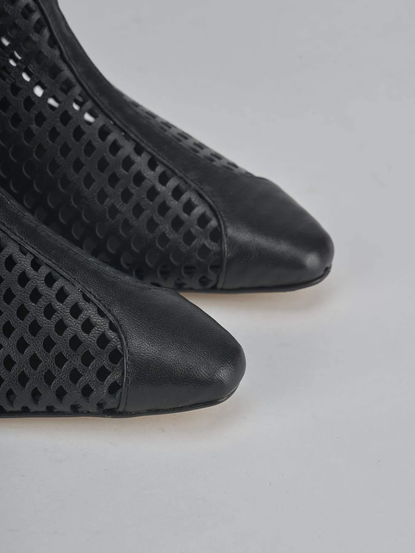 Stivaletto tacco 7 cm fondo in leggera gomma e soletto interno in vera pelle. Tomaia in morbida pelle forata, punta sfilata, puntale ton sur ton, liscio, comoda cerniera posteriore e tacco rocchetto per un look chic.