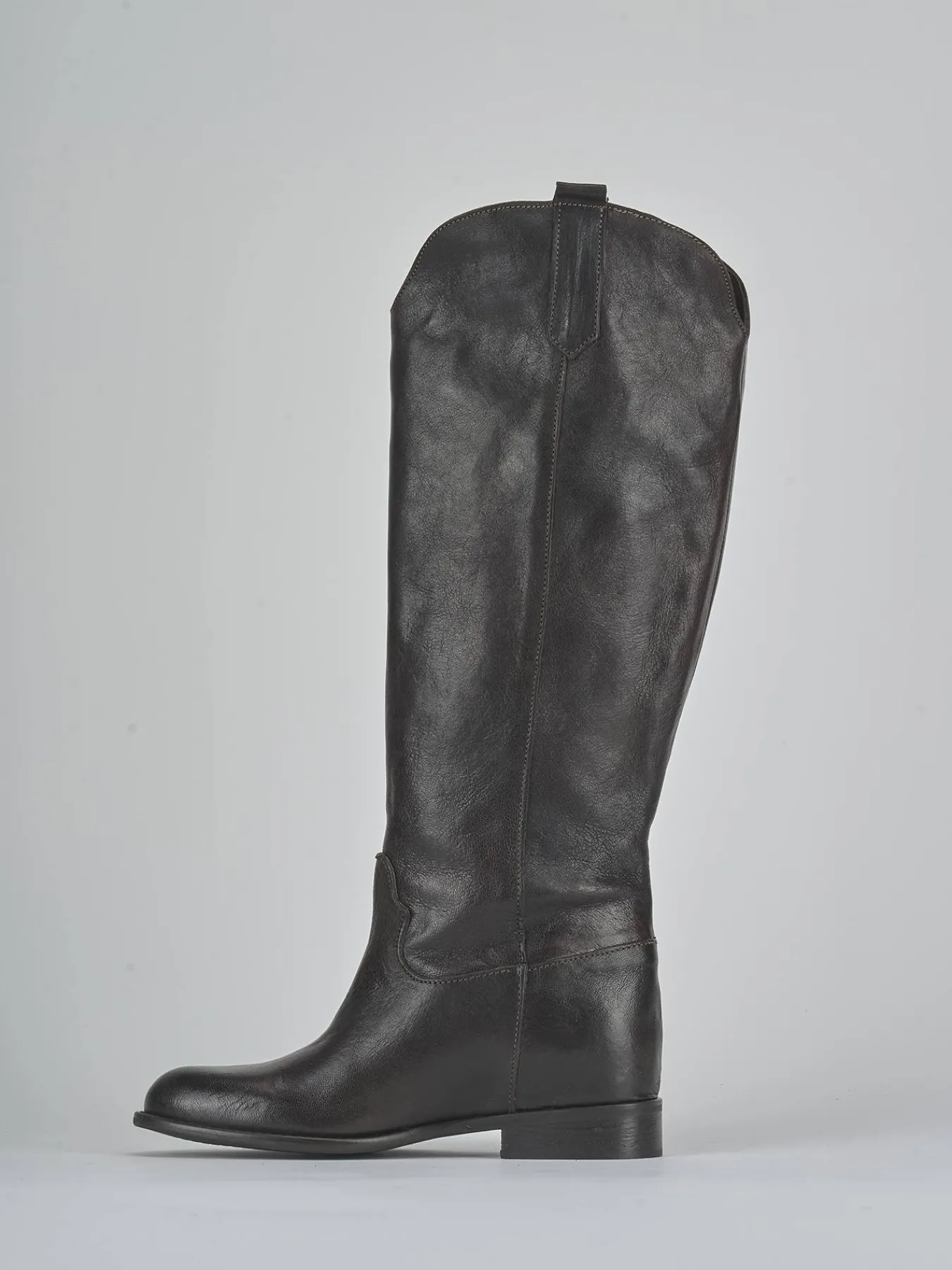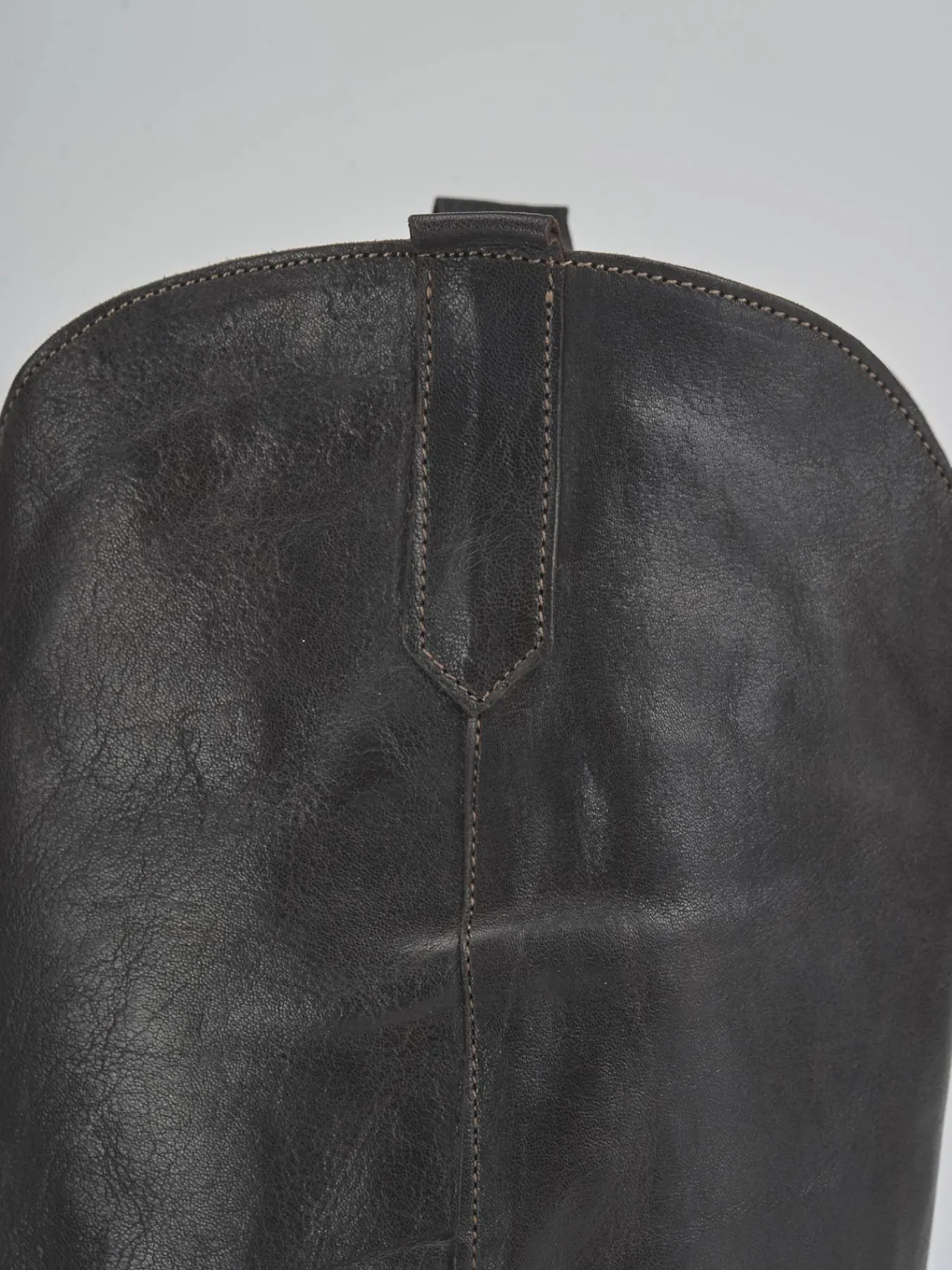 La tomaia in morbida pelle avvolge il piede con una punta affusolata, mentre le cuciture sul gambale, che arriva appena sotto il ginocchio, aggiungono un tocco di sofisticatezza.