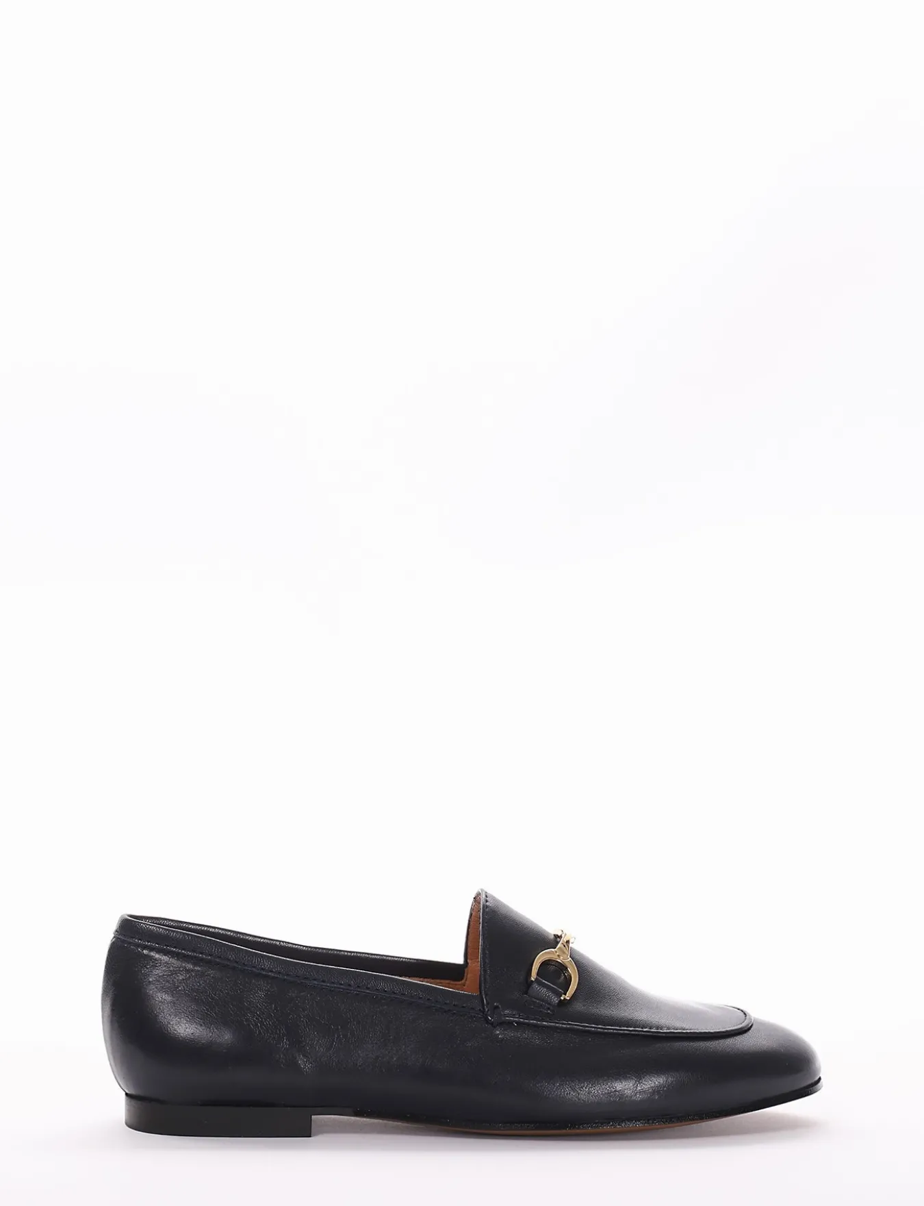 Mocassino tacco 1cm, fondo cuoio e soletto interno in vera pelle. Tomaia in morbidissima pelle, con particolare morsetto in metallo e cucitura a vaschetta.