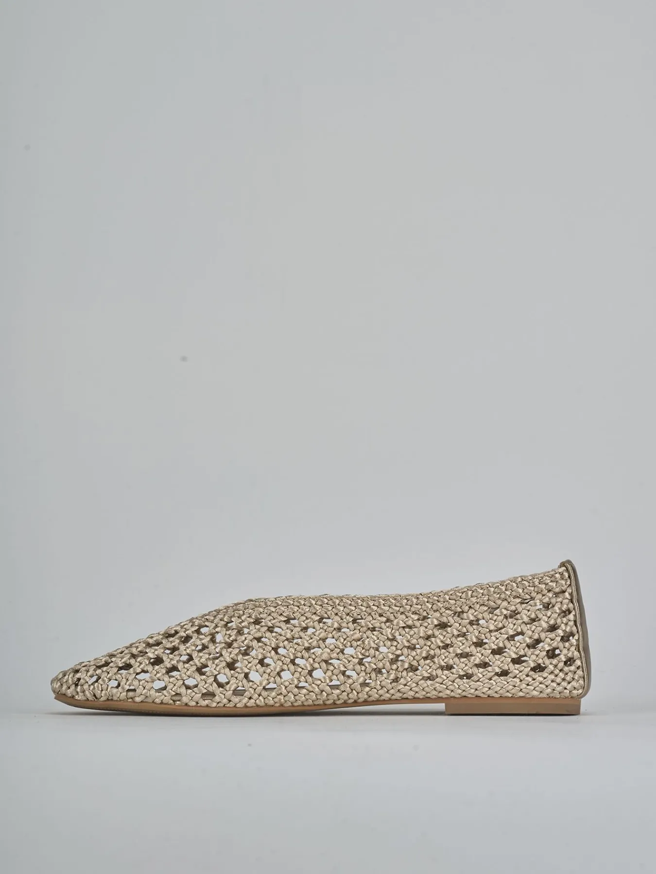 Realizzate in un tessuto beige laminato traforato e intrecciato, queste calzature offrono un design unico e sofisticato.