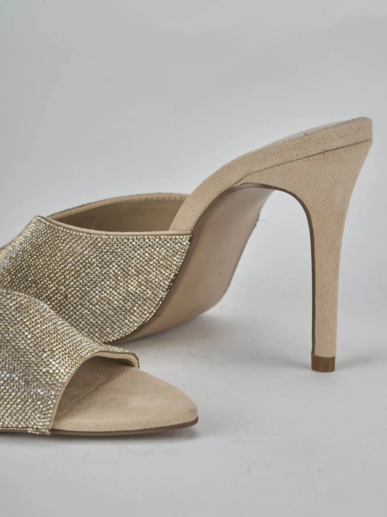 Realizzate in morbido camoscio beige, offrono un tocco di lusso e raffinatezza.