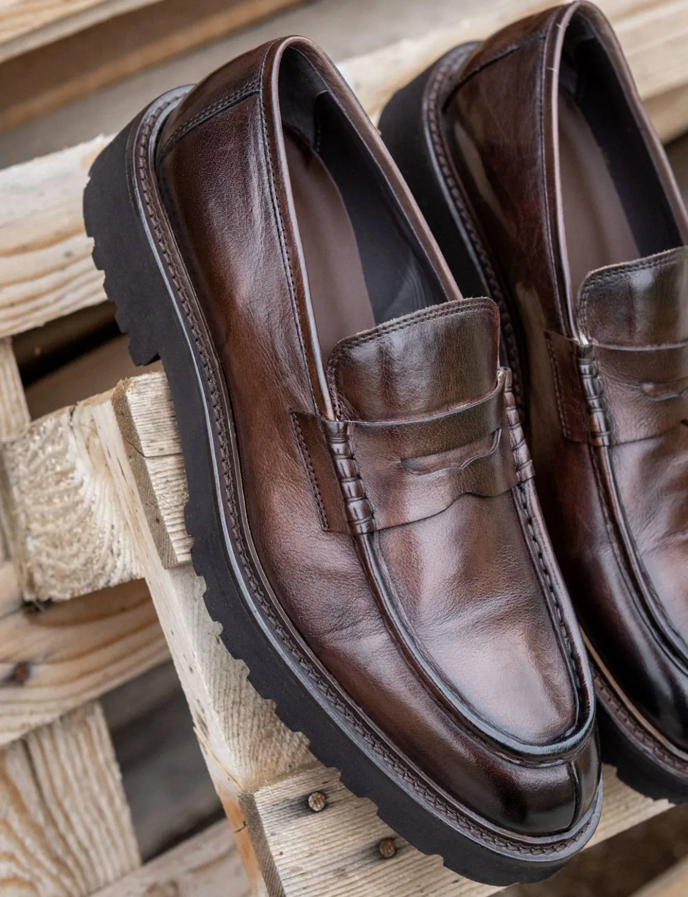 La punta squadrata e le cuciture norvegese aggiungono un tocco di raffinatezza artigianale.