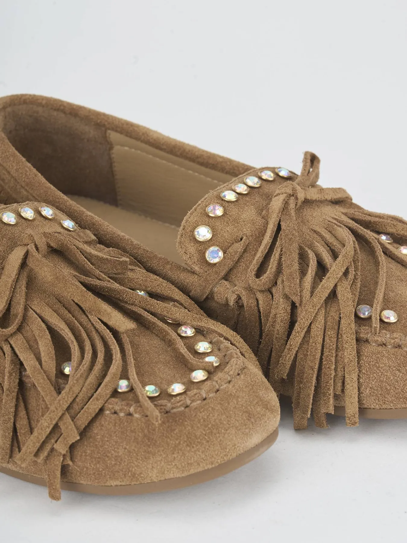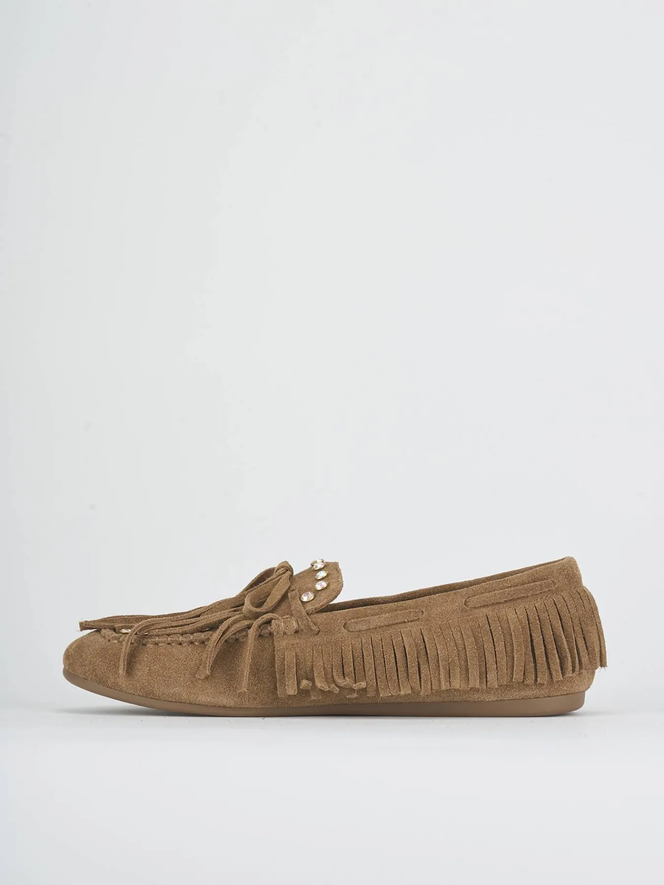 Realizzati in morbido camoscio, questi mocassini presentano eleganti frange laterali che aggiungono un tocco di stile raffinato.