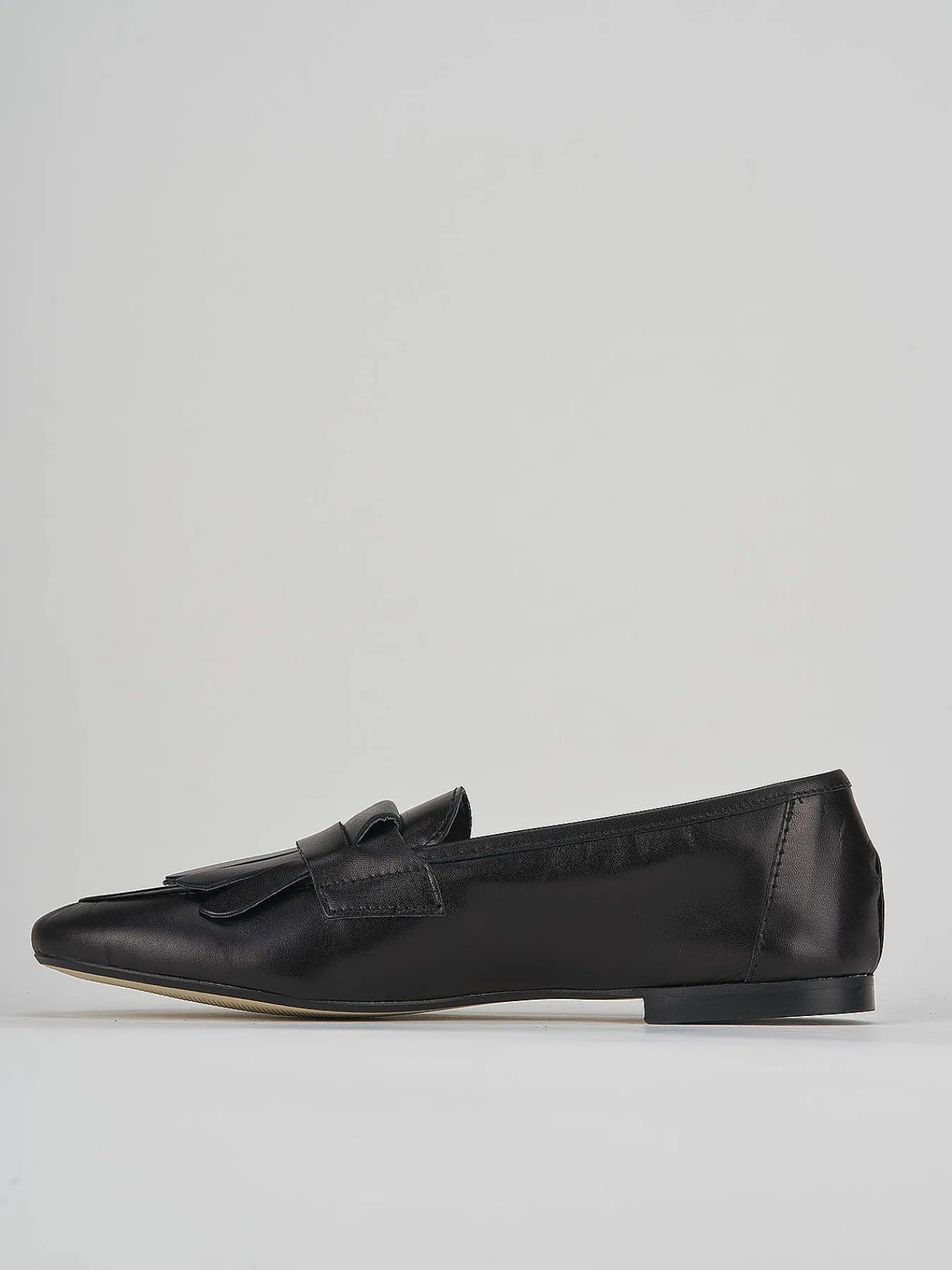 Realizzati in morbida pelle nera, questi mocassini presentano un tacco basso di 1 cm, ideale per garantire comodità durante tutta la giornata.