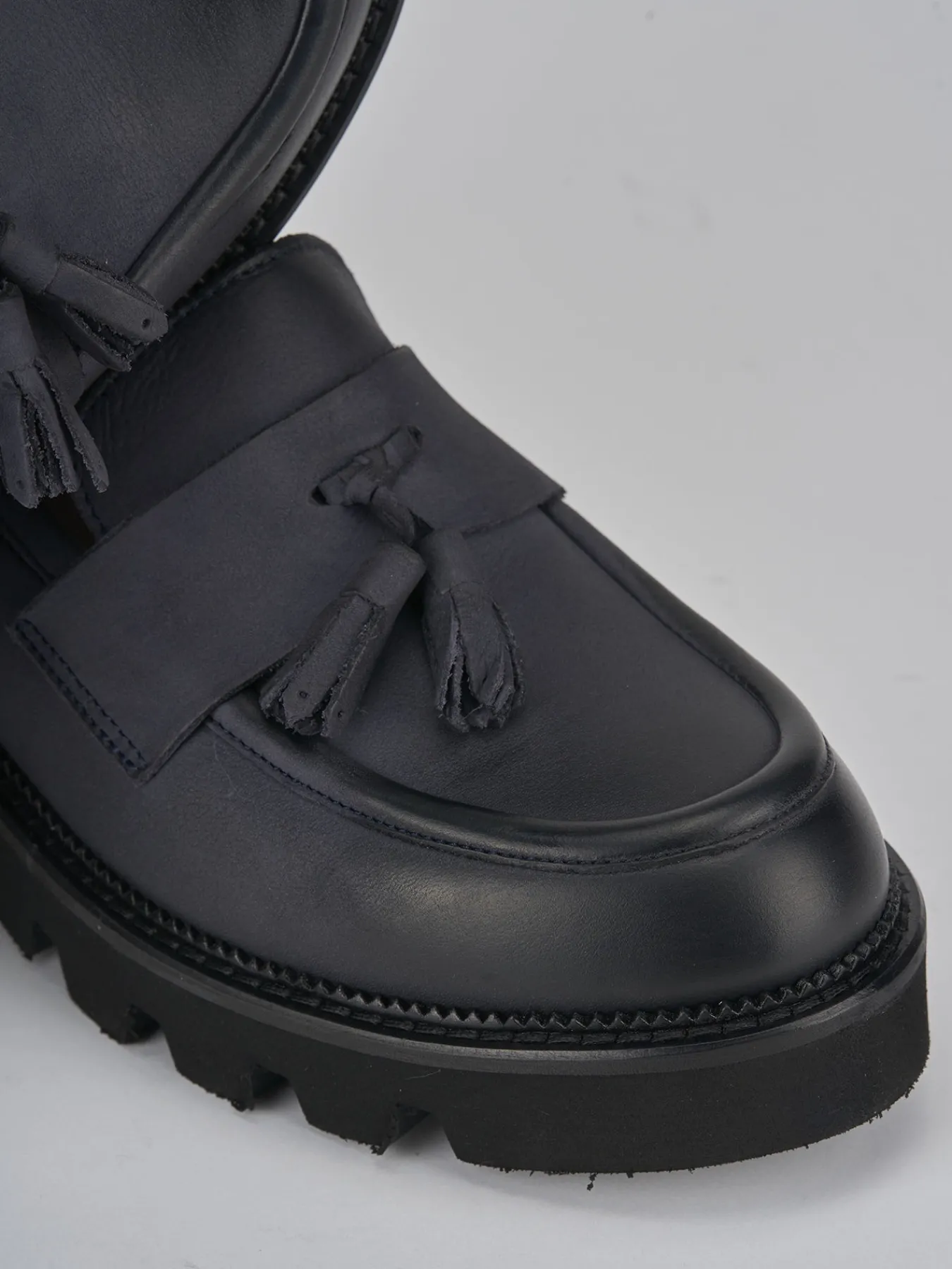 Mocassino tacco 3 cm fondo in gomma e soletto interno in vera pelle. Tomaia in morbido nabuk, punta leggermente squadrata, cuciture a vista, nappine. perfetto con un vestito o un jeans.