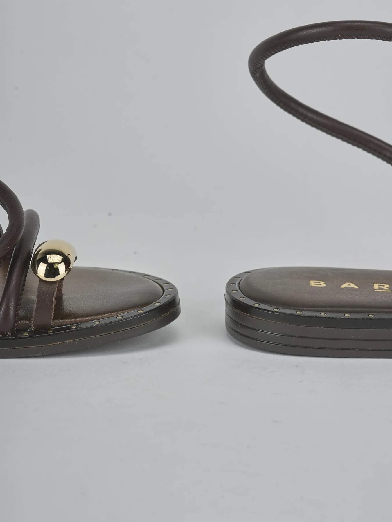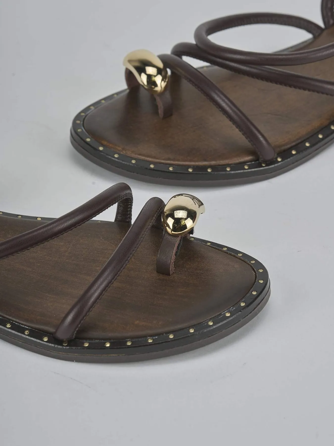 La tomaia è in morbida pelle, con una punta affusolata e un design infradito ad anello arricchito da un elegante accessorio.
