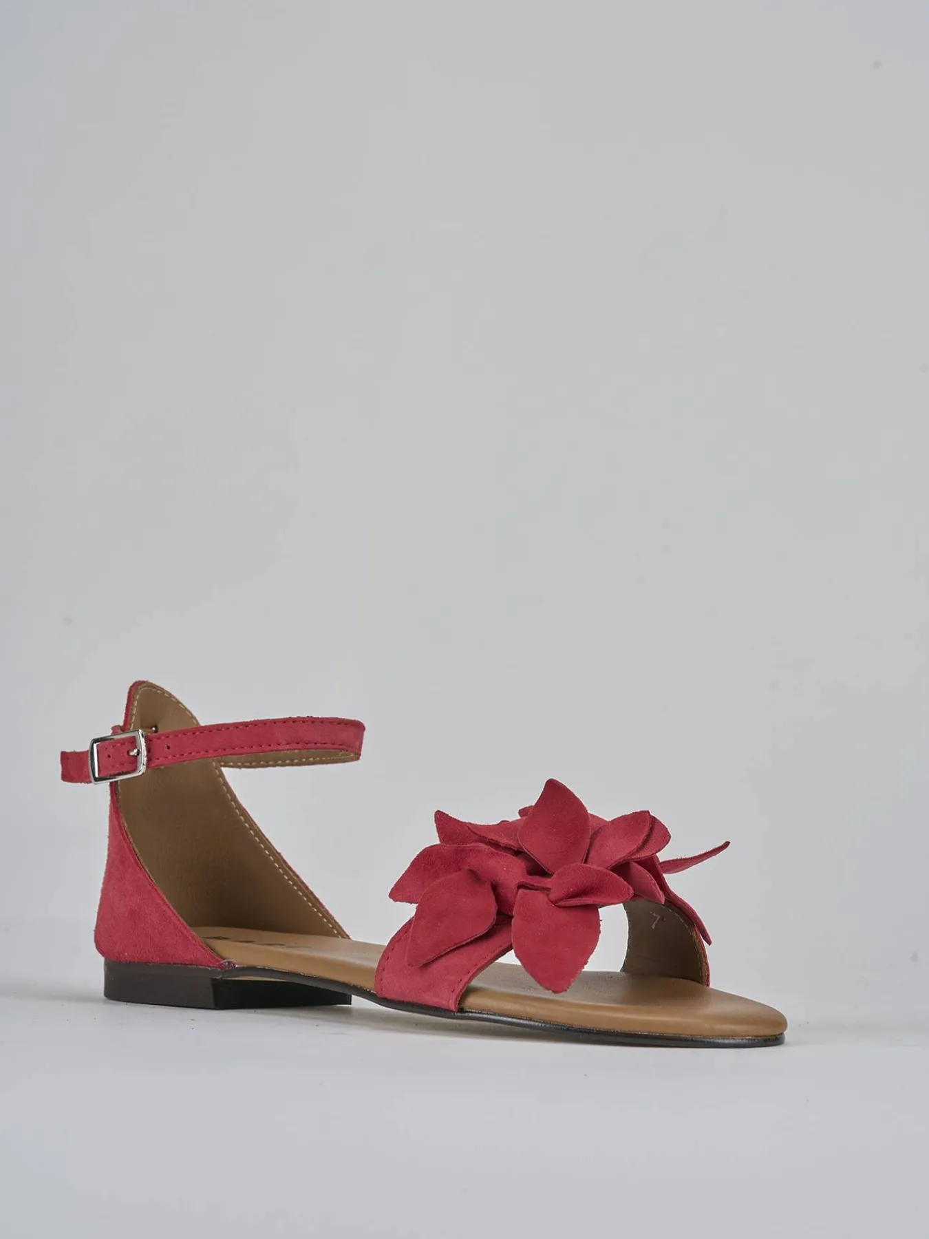 Questo sandalo rosso in morbido camoscio è dotato di un tacco basso di 1 cm, ideale per chi desidera muoversi con leggerezza senza rinunciare allo stile.