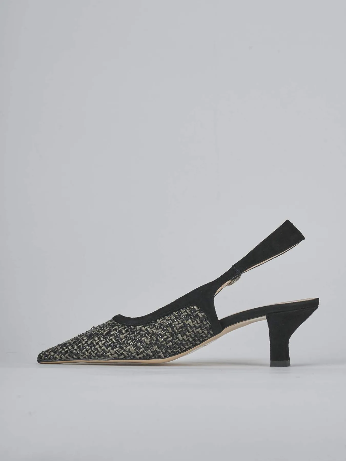 Slingback decolte’ tacco 6 cm fondo in gomma e soletto interno in vera pelle. Tomaia in morbido camoscio e foderata in juta, punta sfilata, scollo squadrato, bordo rinforzato, cinturino spesso che avvolge tallone. Fibbia regolabile per un maggiore comfort e tacco rocchetto per un look chic.