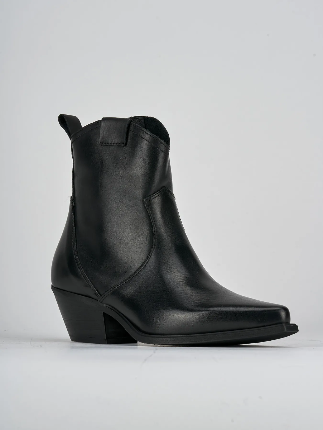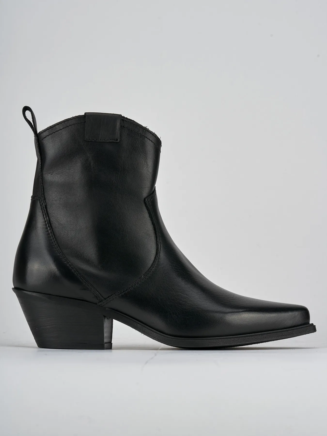 Stivaletto texano tacco 6 cm fondo in leggera gomma e soletto interno in vera pelle. tomaia in morbida pelle, punta sfilata, cuciture in rilievo, ghette e tacco cubano. Particolare guardolo sporgente per un look tex perfetto.