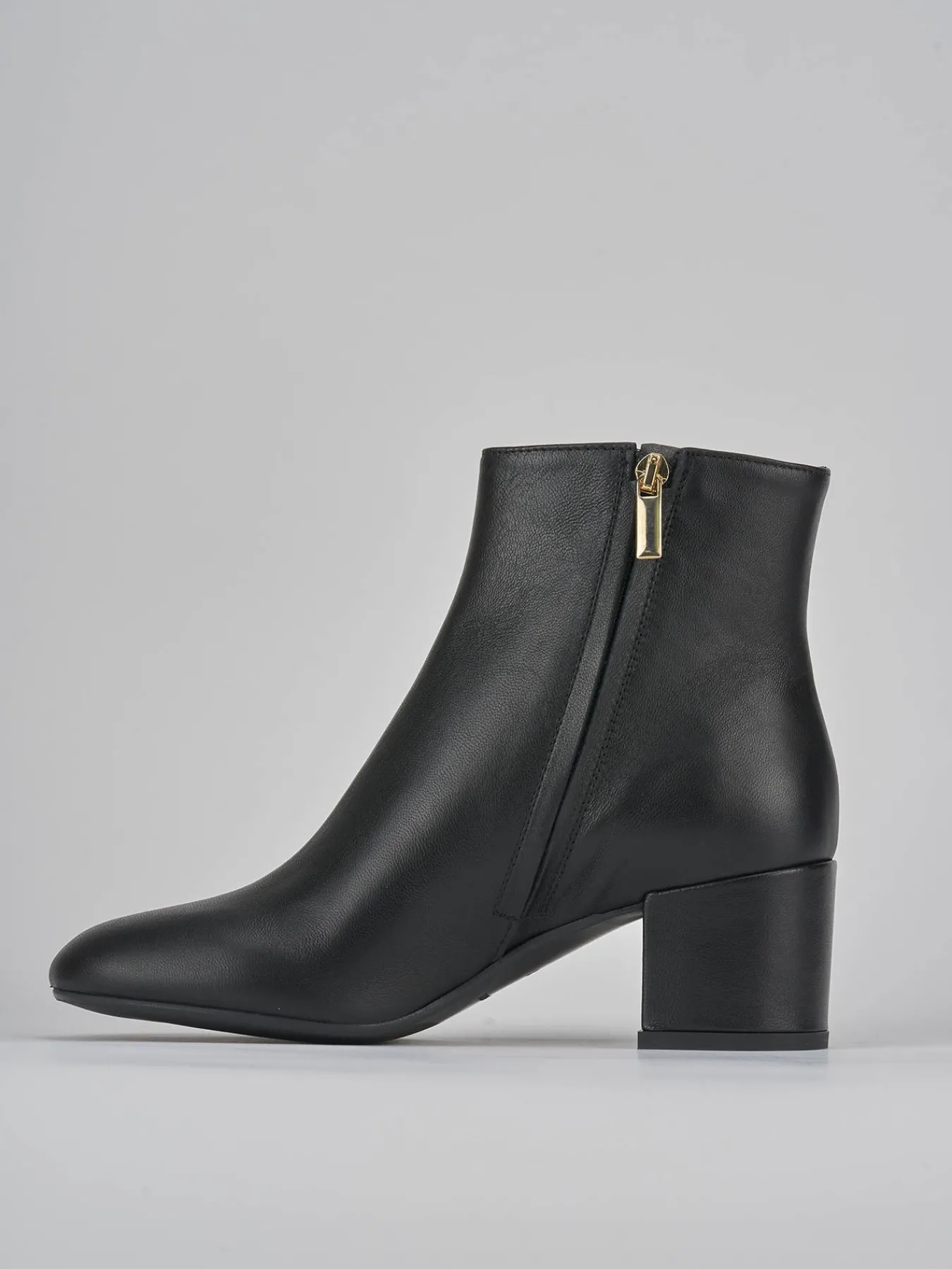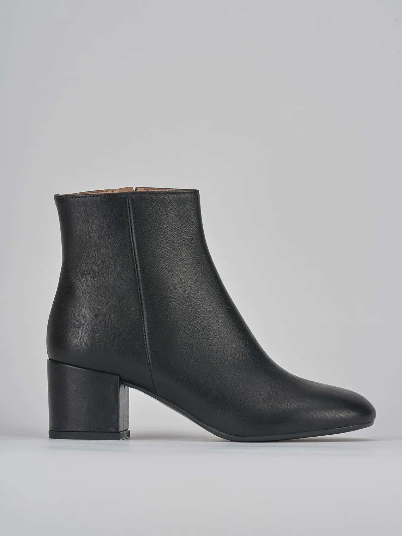 Stivaletto tacco 5.5 cm fondo in cuoio e soletto interno in vera pelle. tomaia in morbida pelle nappata, punta leggermente squadrata, cerniera laterale, tacco grosso. perfetto per ogni tua occasione.