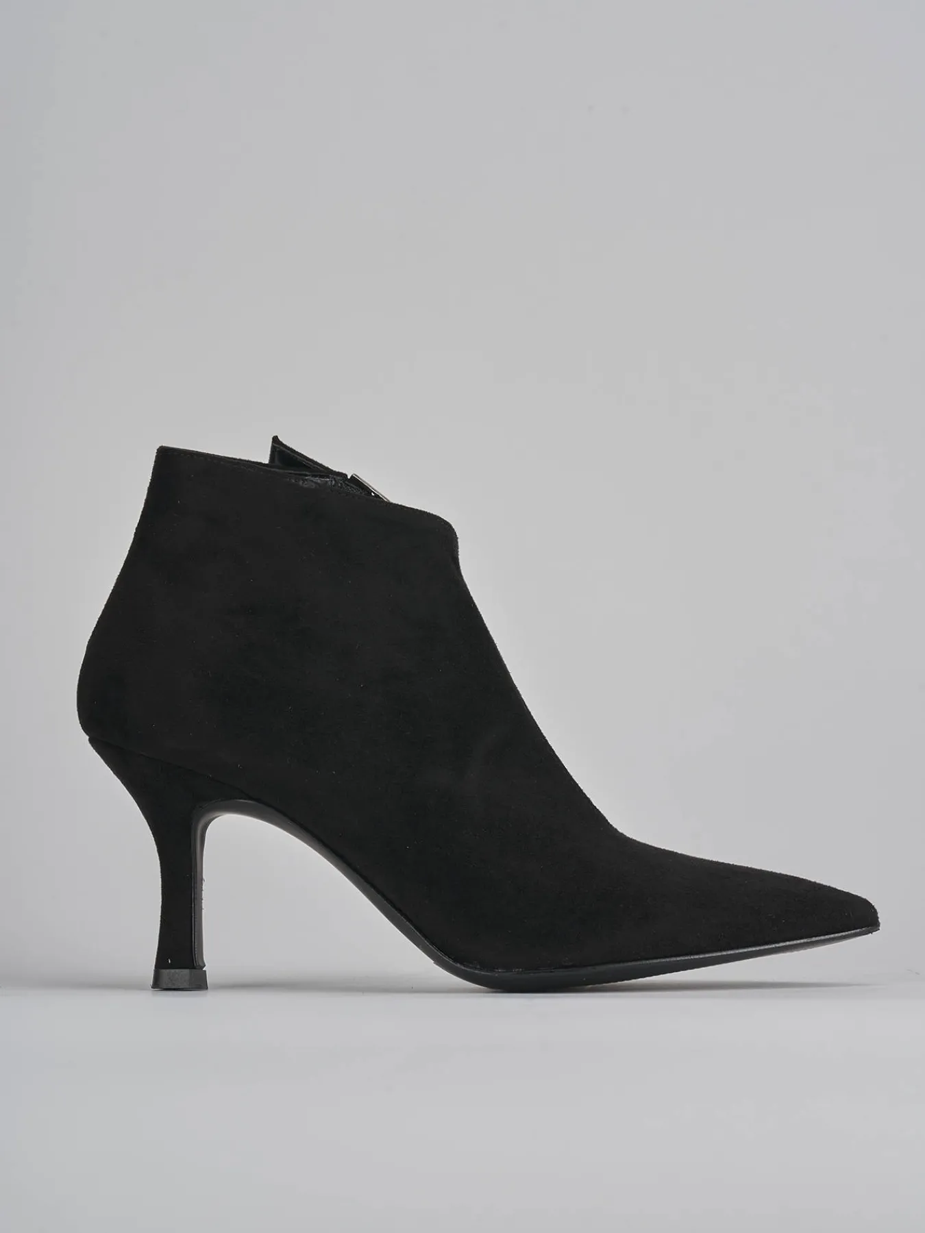 stivaletto tacco 7 cm fondo in gomma e soletto interno in vera pelle. tomaia in morbido camoscio, punta sfilata, cinturino con fibbia regolabile e apertura laterale interno che arriva fino alla punta. tacco fino per un tocco elegante e chic ai tuoi look.