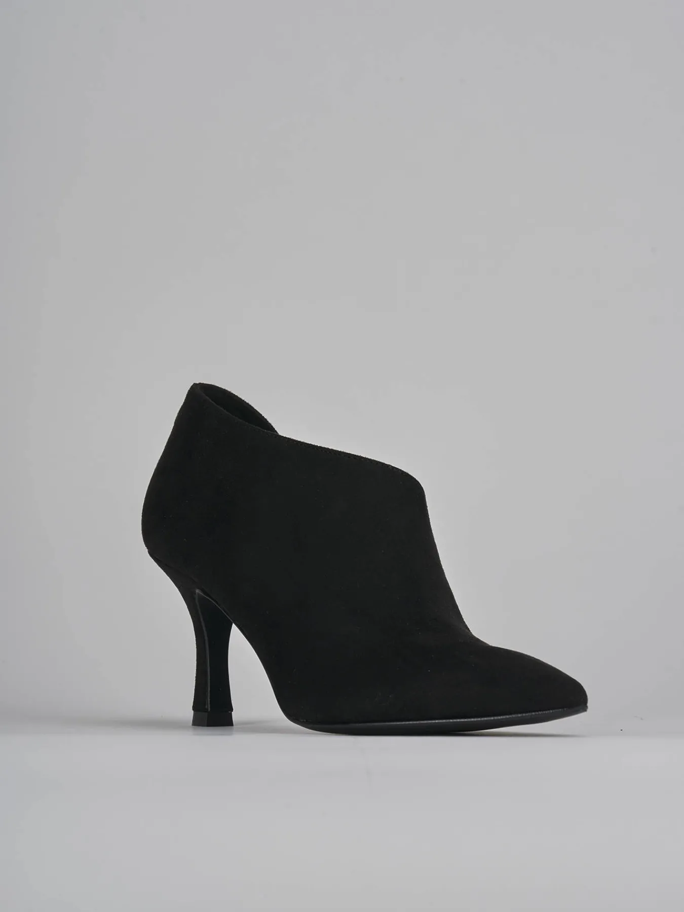 stivaletto tacco 7 cm fondo in leggera gomma e soletto interno in vera pelle. tomaia in morbido camoscio, punta sfilata, apertura laterale e tacco rocchetto. perfetto per le tue serate più speciali.