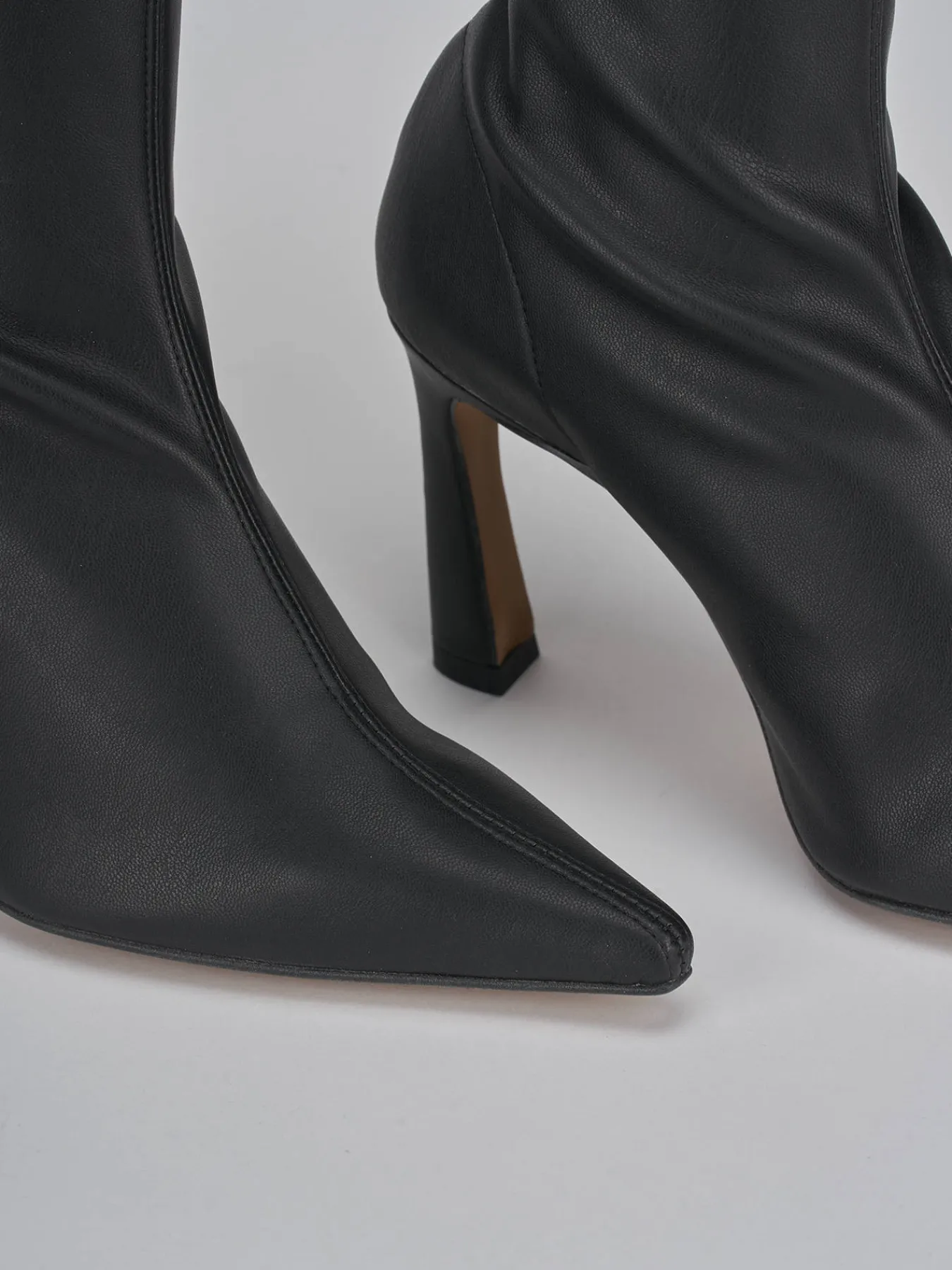 tronchetto tacco 9 cm fondo in gomma e soletto interno in vera pelle. tomaia in morbida pelle, punta sfilata, gambale altezza metà polpaccio e in pelle elasticizzata e tacco fino rocchetto. perfetto con dei jeans o un vestito.