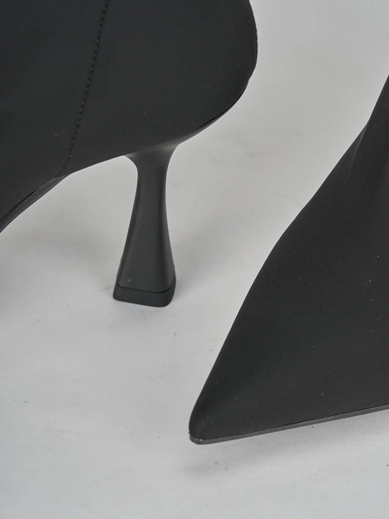 Realizzati in tessuto nero, questi tronchetti presentano un tacco alto di 9 cm che esalta la femminilità e dona un tocco di classe al tuo outfit.
