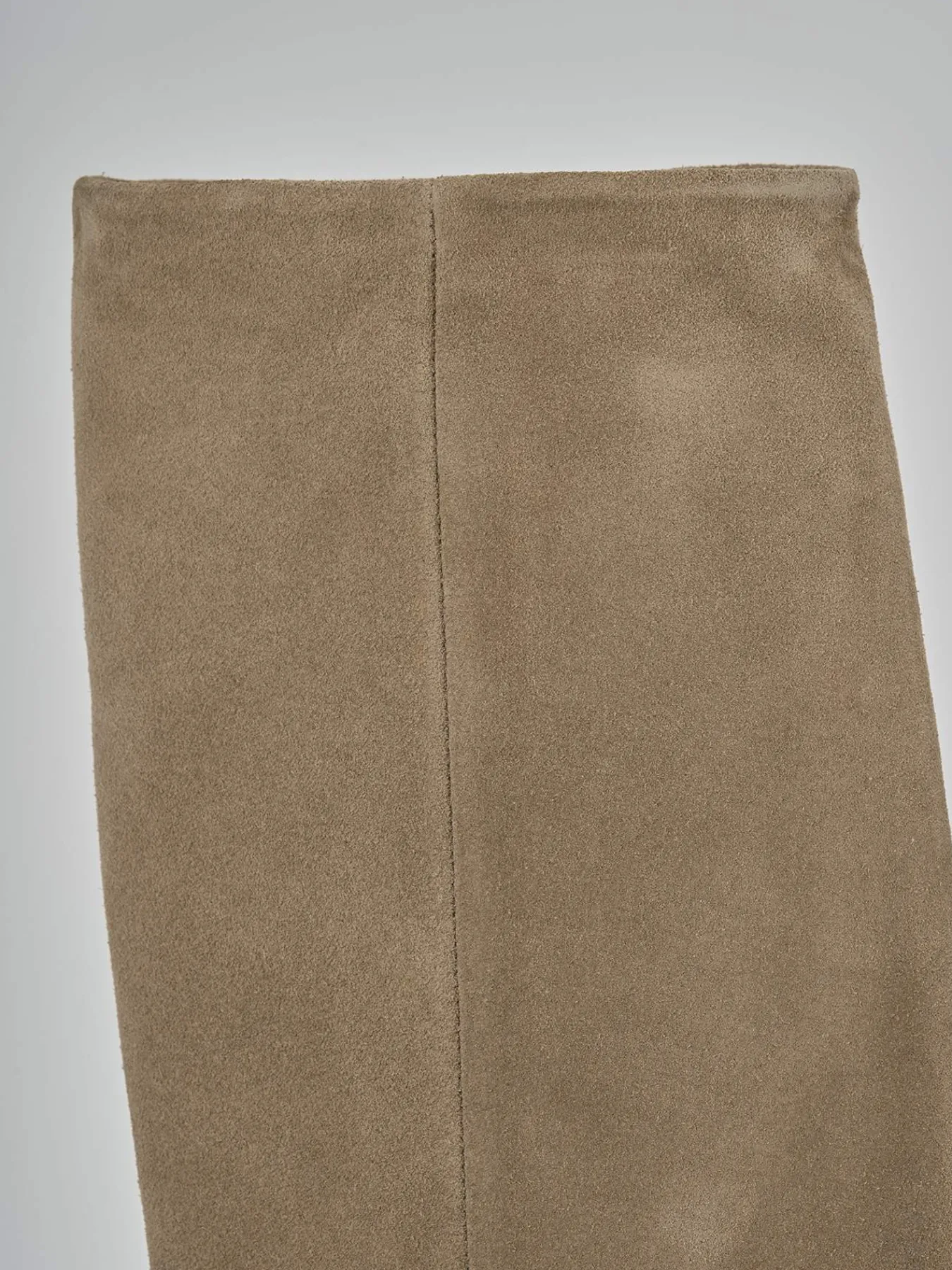 Stivale tacco 5 cm fondo in cuoio e soletto interno in vera pelle. Tomaia in morbido camoscio, punta sfilata, cuciture visibili, altezza gambale fino al ginocchio ricoperto da un risvolto fino al tacco e tacco fino rocchetto. Per un look cool.