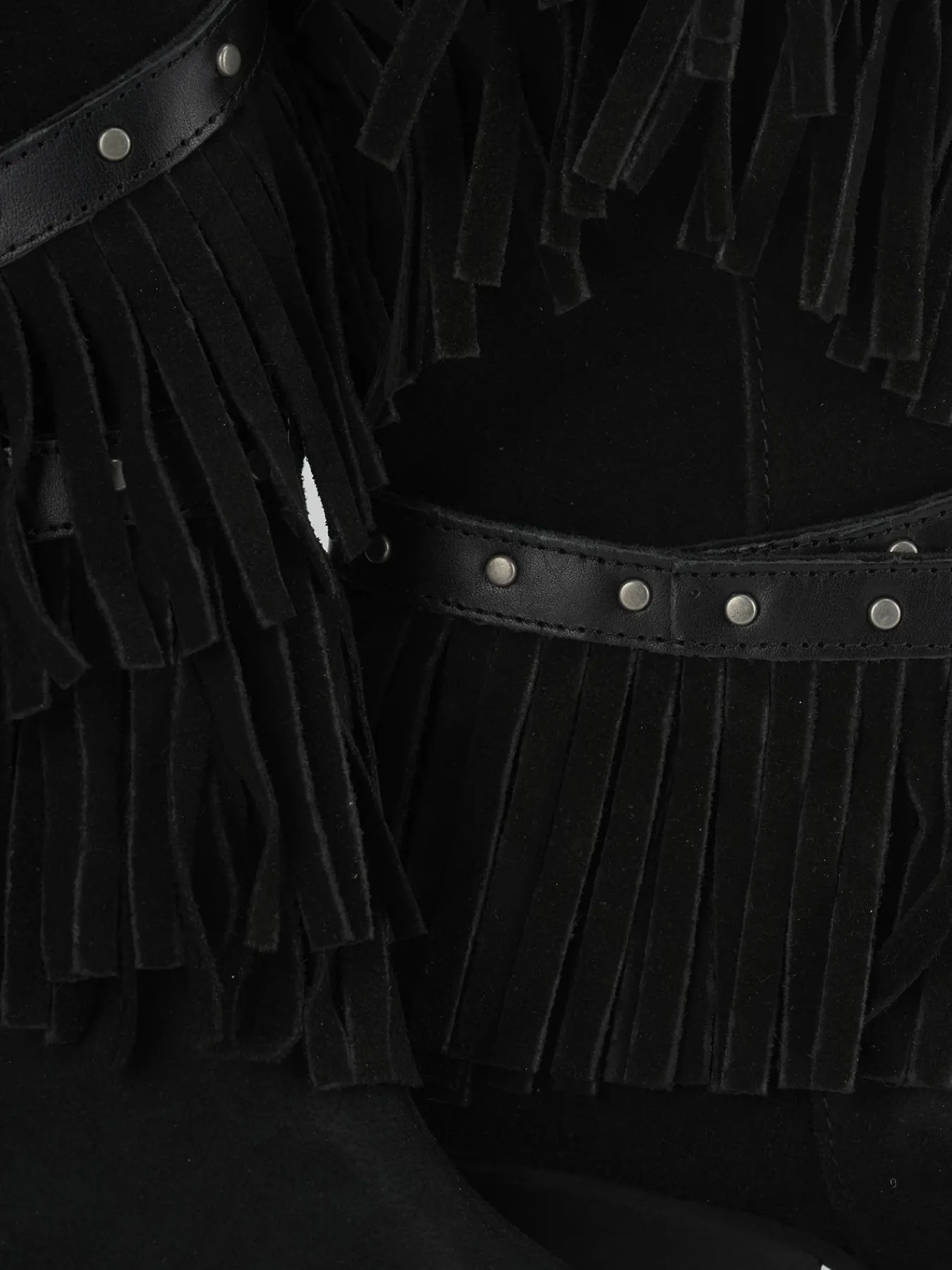 Le frange e l’apertura a ‘V’ frontale aggiungono un dettaglio dinamico e alla moda, mentre le ghette laterali e il guardolo sporgente completano il design con un tocco di originalità.
