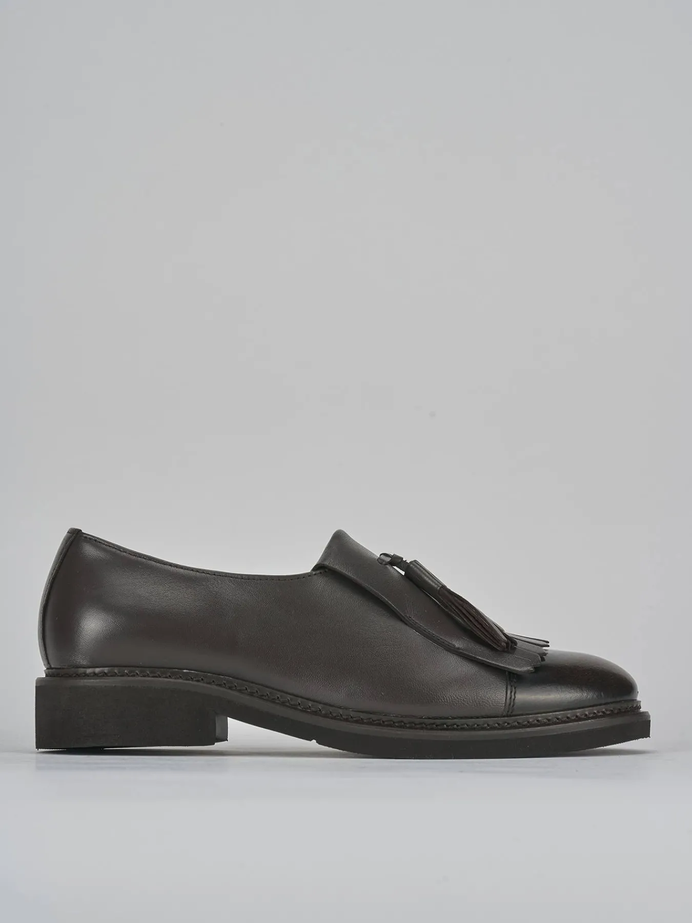 La punta affusolata e il puntale aggiungono un tocco di eleganza, mentre le nappine e le frange donano un dettaglio chic.
