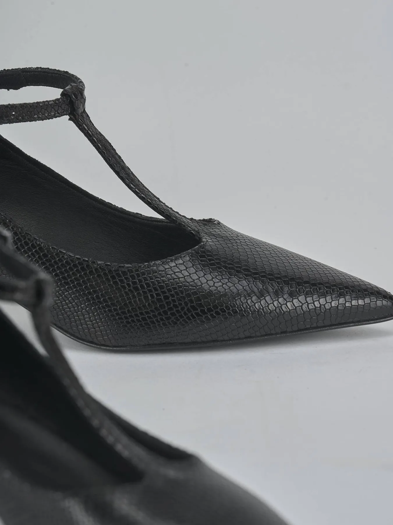La tomaia è realizzata in morbida pelle stampata effetto pitonato, donando un aspetto sofisticato e moderno.