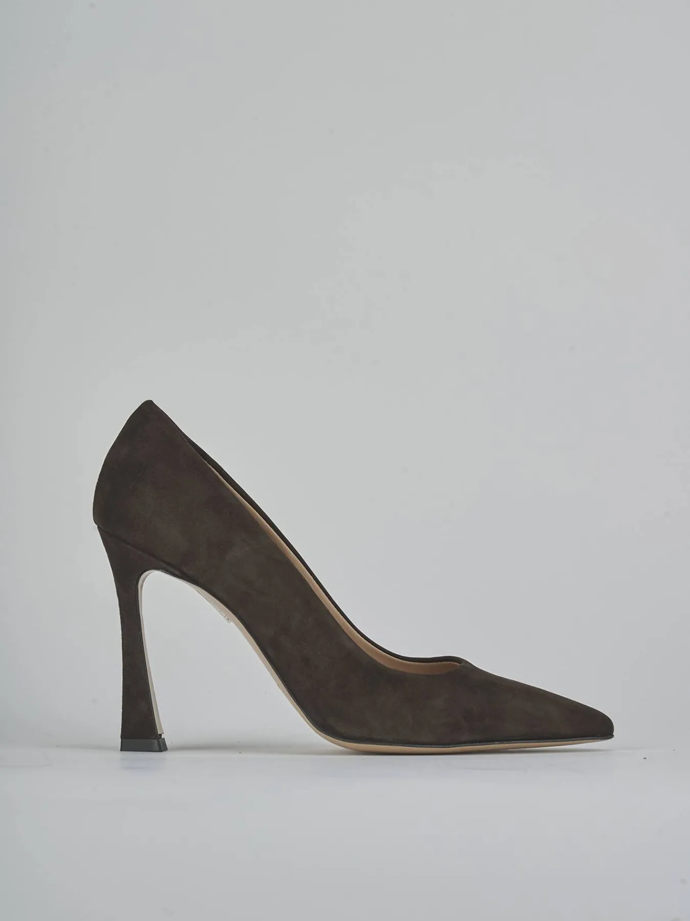 La tomaia in morbida pelle scamosciata avvolge il piede con grazia, mentre la punta sfilata e lo scollo a ‘U’ profondo aggiungono un tocco di raffinatezza.