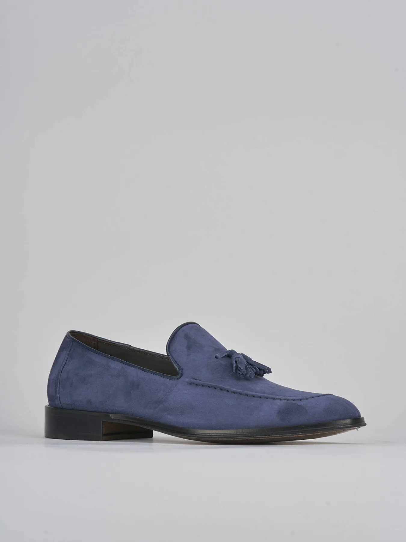 La punta leggermente squadrata e le cuciture a vista aggiungono un dettaglio distintivo, mentre le nappine completano il look chic.