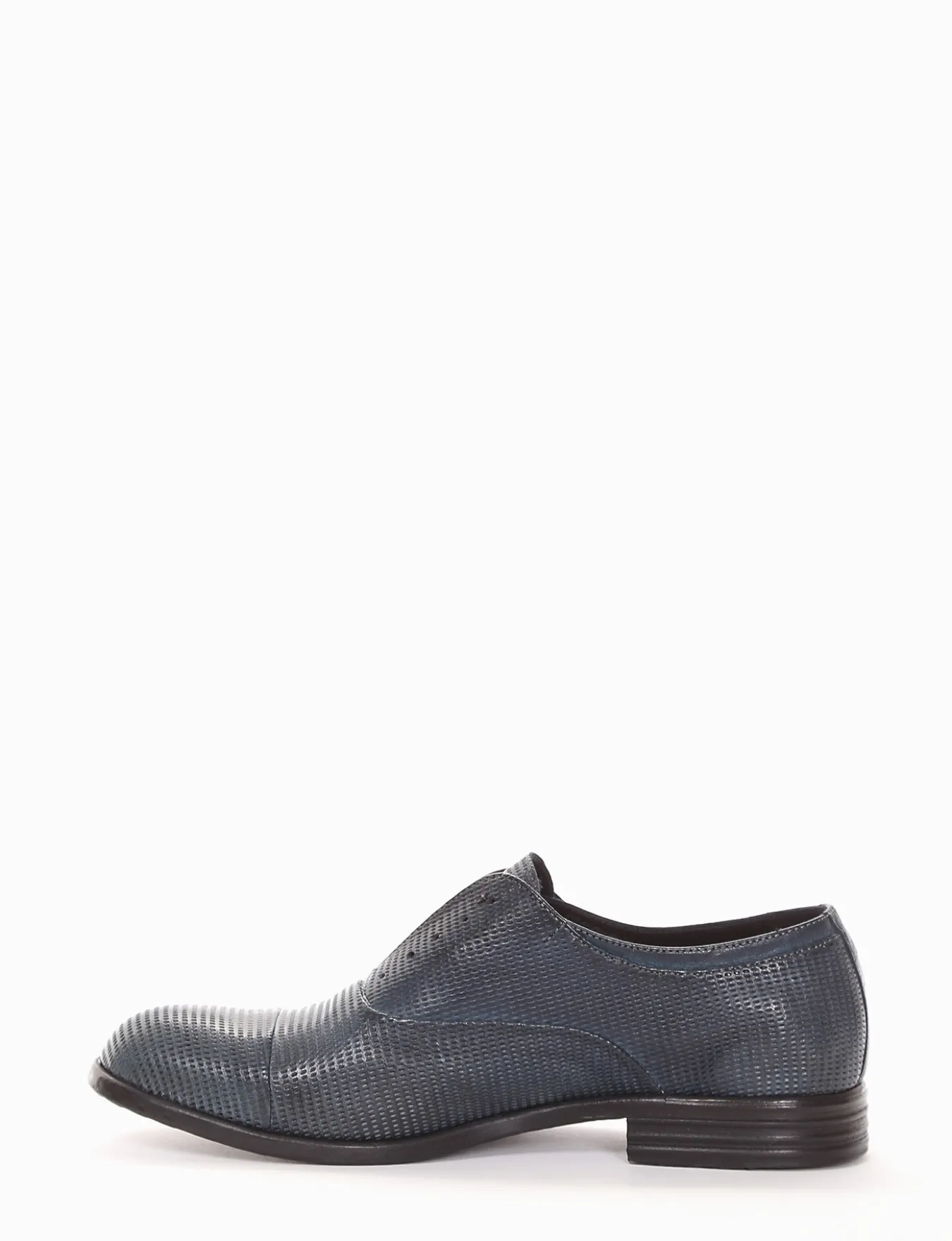 Scarpa no-lace fondo in leggero cuoio e soletto interno in vera pelle. Tomaia in nappa lucente con laseratura effetto artigianale ed elastico sotto alla linguetta per una facile calzata. Laccio a corredo.