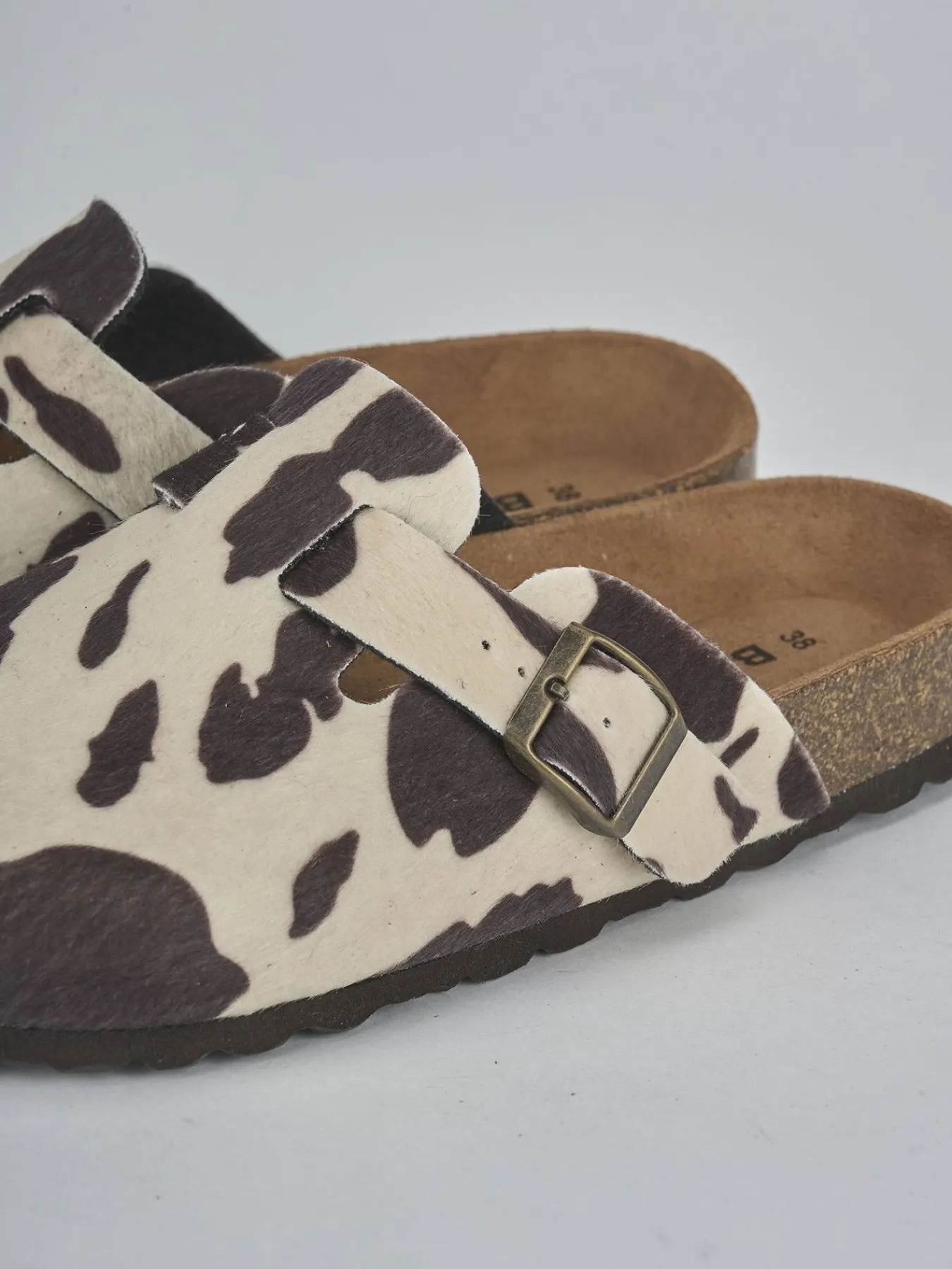 La tomaia è realizzata in morbida pelle ricoperta in cavallino, con un elegante motivo animalier che cattura l’attenzione.