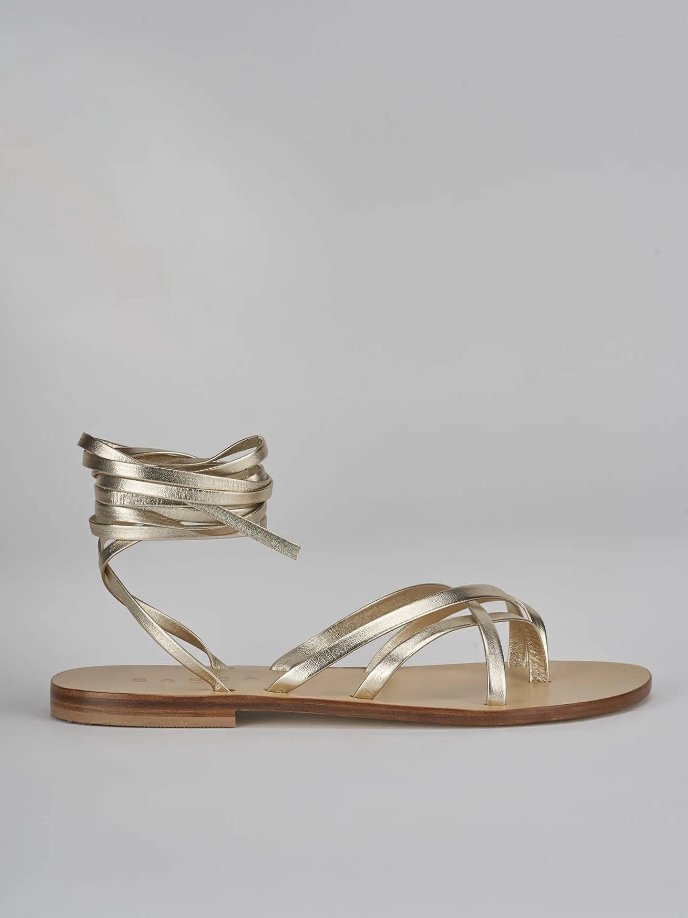 Realizzato in pelle color oro, questo sandalo infradito è sinonimo di eleganza e comodità.