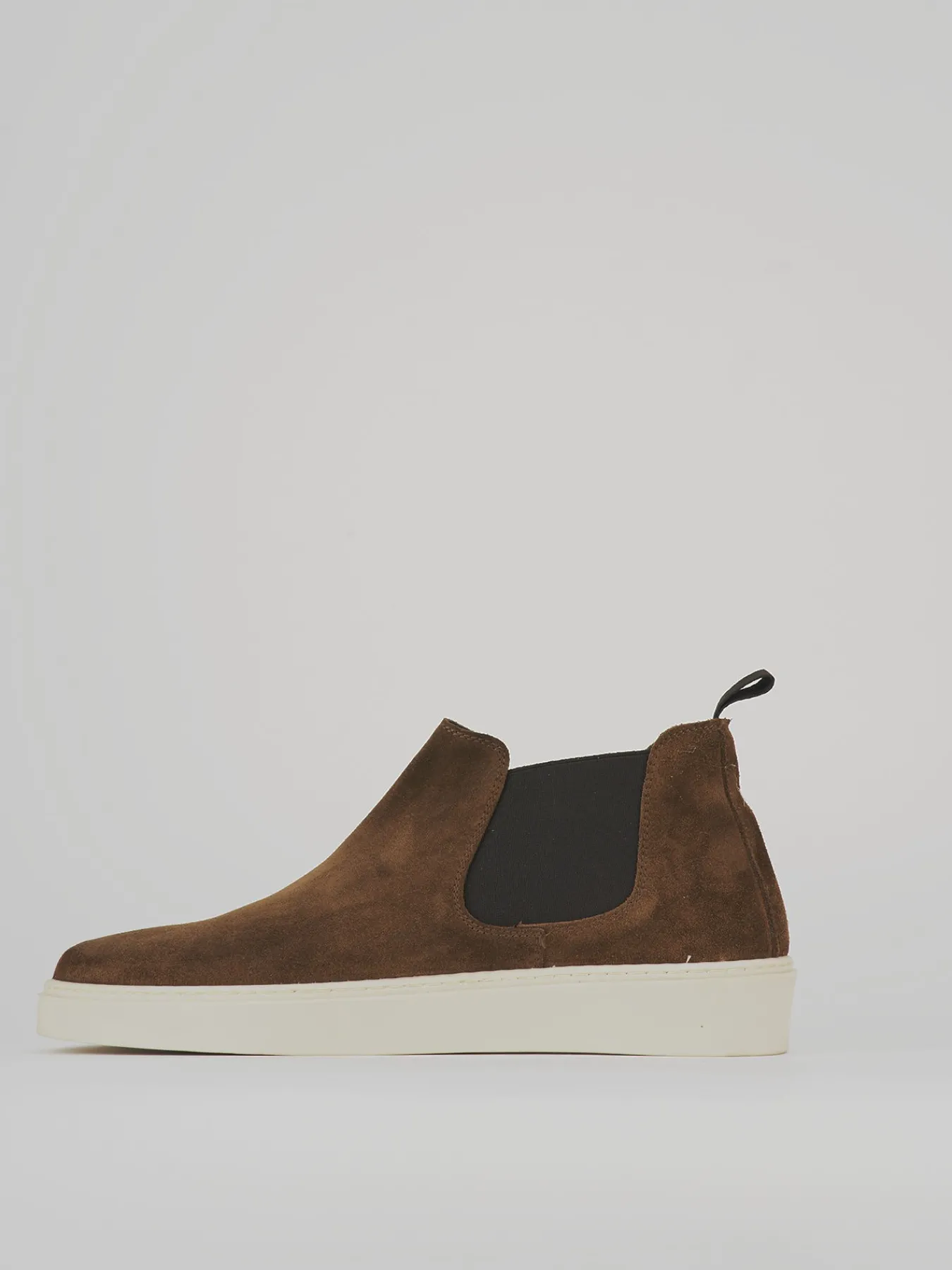 La tomaia in morbido camoscio dona un tocco di eleganza, mentre la punta tonda e le cuciture visibili aggiungono carattere al design.