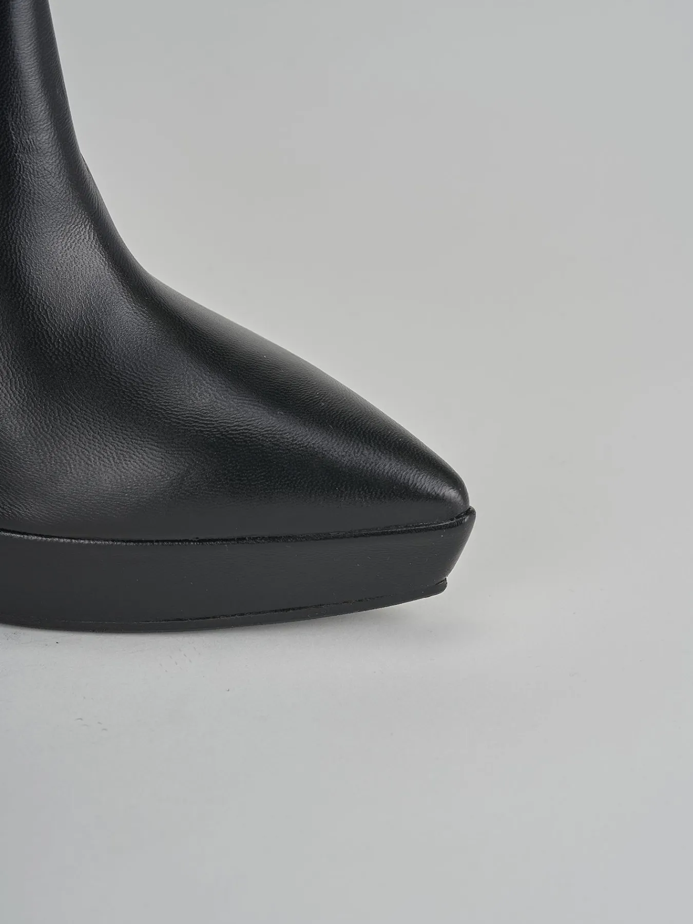 stivaletto tacco 11 cm fondo cuoio e soletto interno in vera pelle. tomaia in morbida pelle, punta sfilata, plateau 2 cm, comoda cerniera laterale per un look chic.