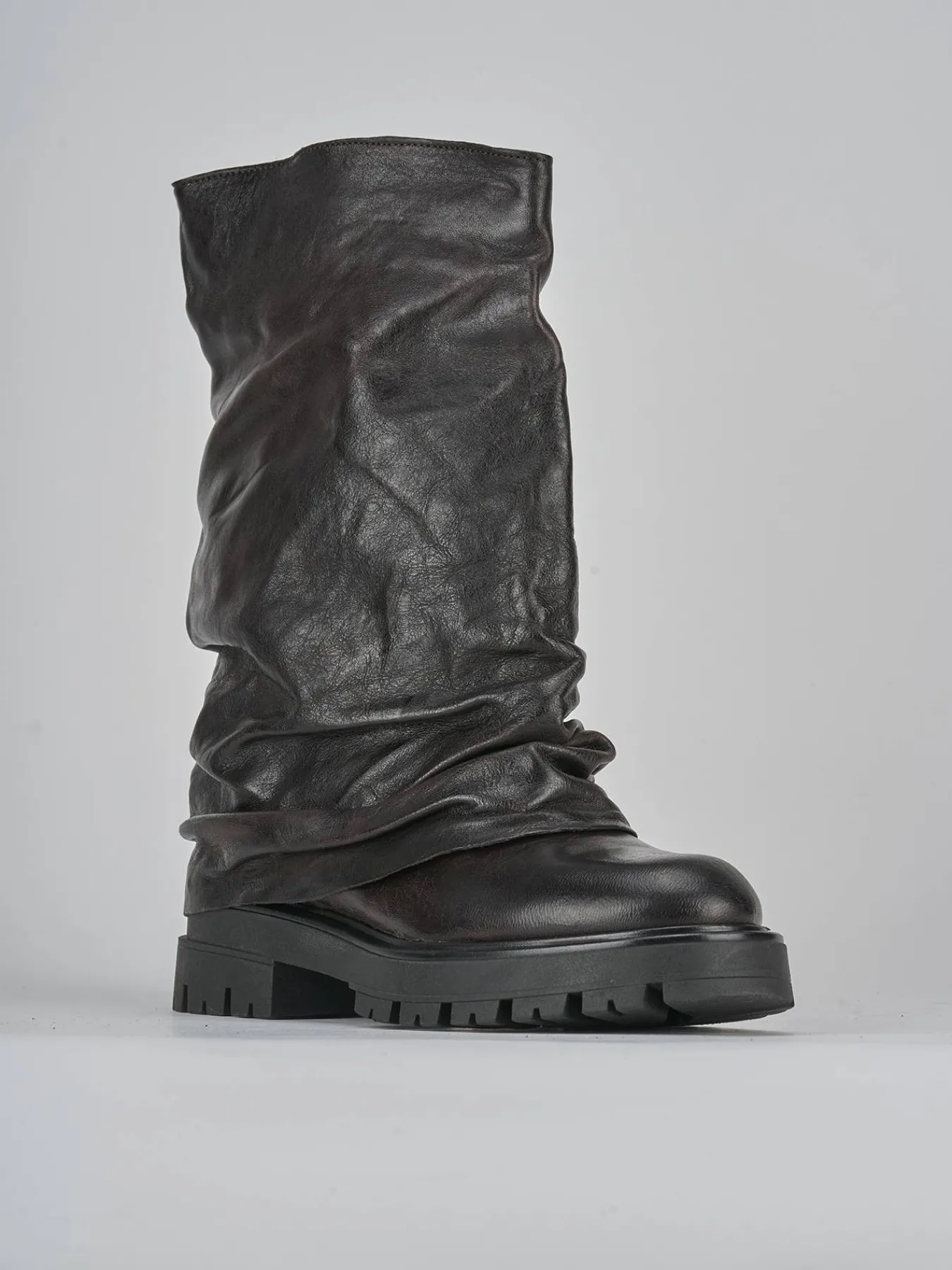 Il gambale arricciato che arriva a metà polpaccio dona un aspetto moderno e dinamico, perfetto per un look biker chic.