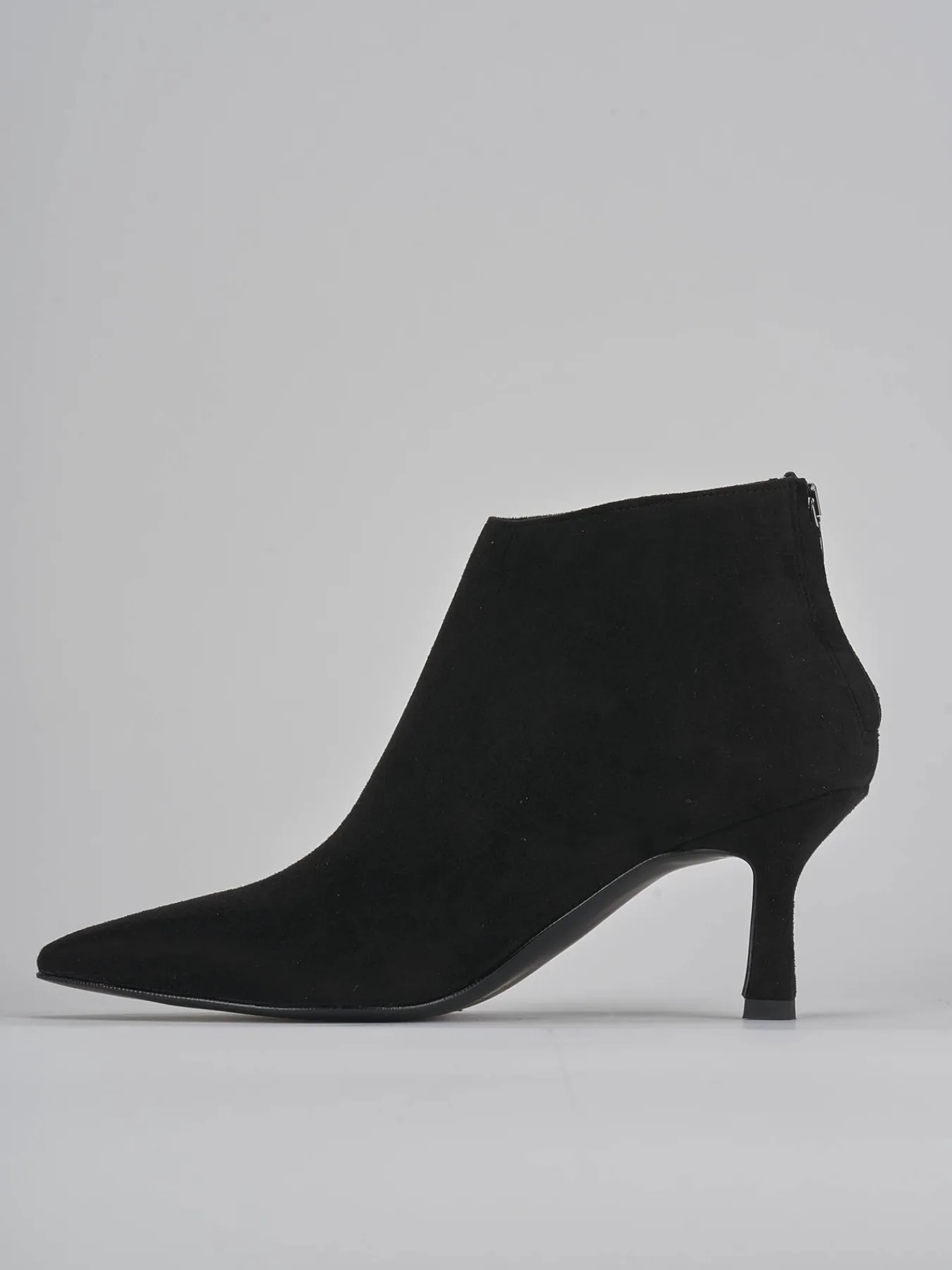 stivaletto tacco 7 cm fondo in leggera gomma e soletto interno in vera pelle. tomaia in morbido camoscio, punta sfilata, cerniera posteriore e tacco rocchetto. versatile con ogni tuo outfit.