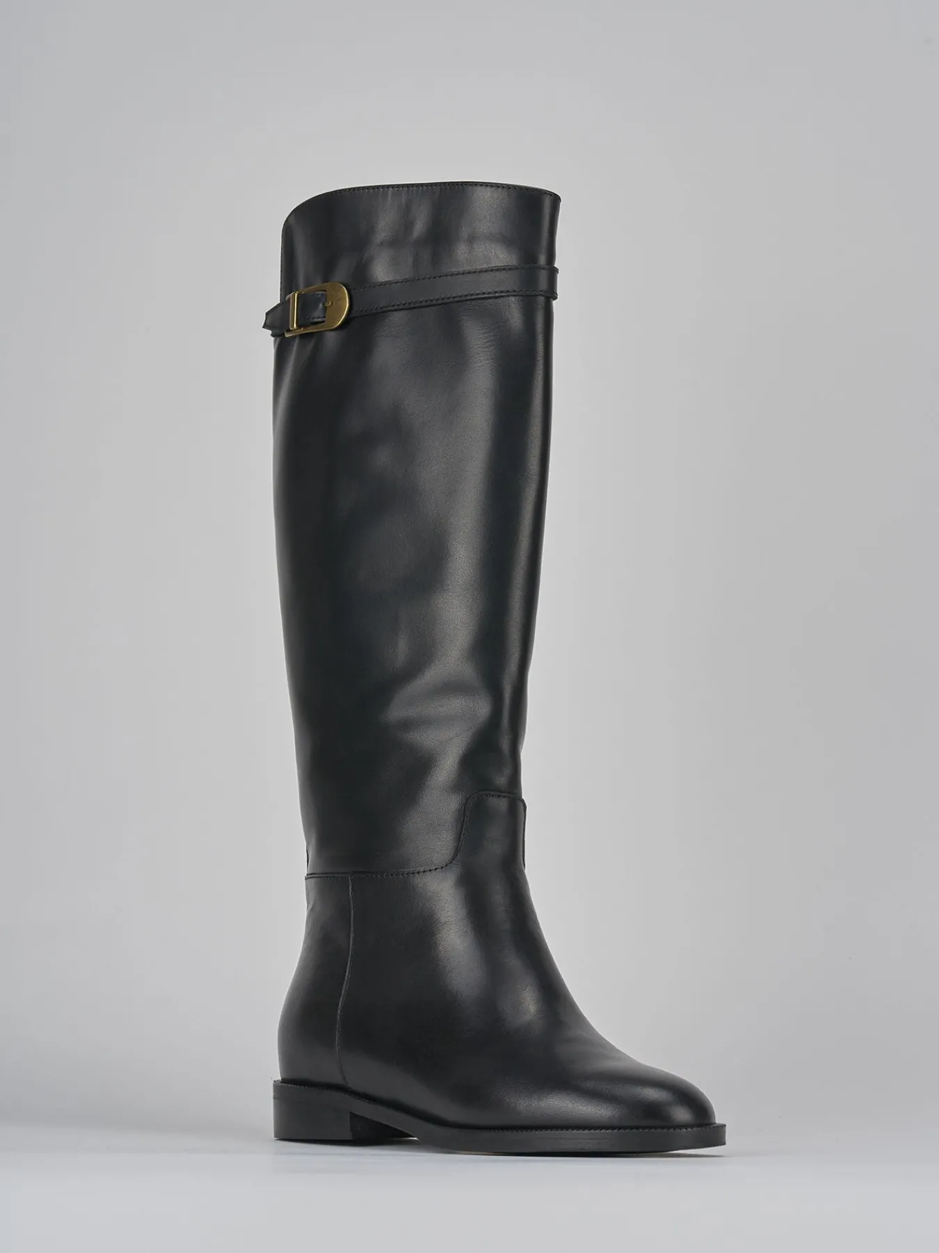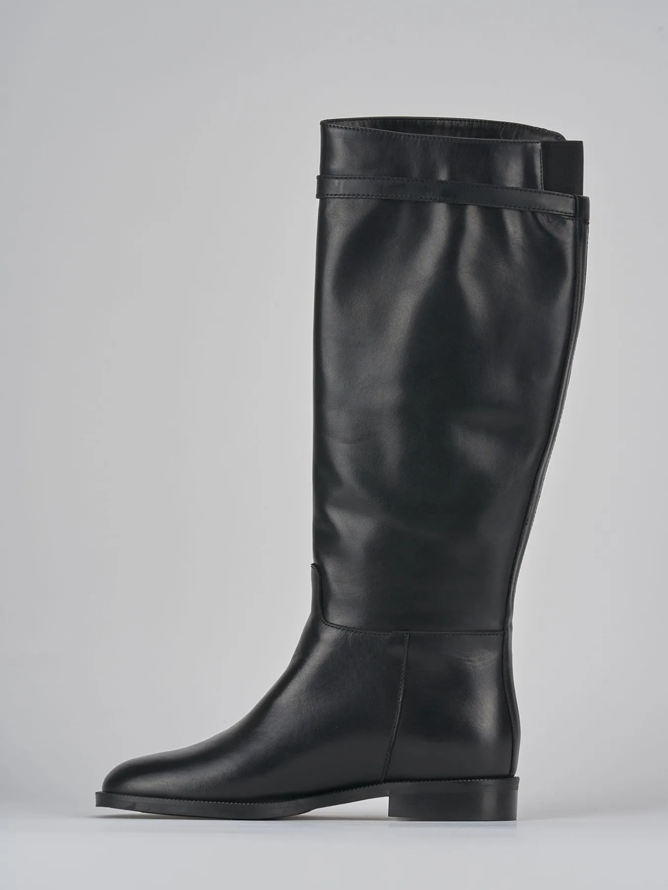 Stivale tacco 2 cm fondo in gomma e soletto interno in vera pelle. Tomaia in morbida pelle, punta tonda, cuciture visibili e cinturino con fibbia in cima al gambale che misura appena sotto il ginocchio. dal design classico, versatile per tutte le tue occasioni.
