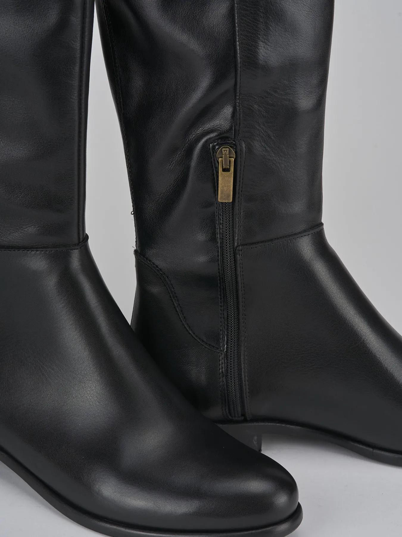 Stivale tacco 2 cm fondo in gomma e soletto interno in vera pelle. Tomaia in morbida pelle, punta tonda, cuciture a vista, comoda zip laterale, parte posteriore con pelle elasticizzata per il massimo del comfort. versatile ed elegante per qualsiasi tua occasione.