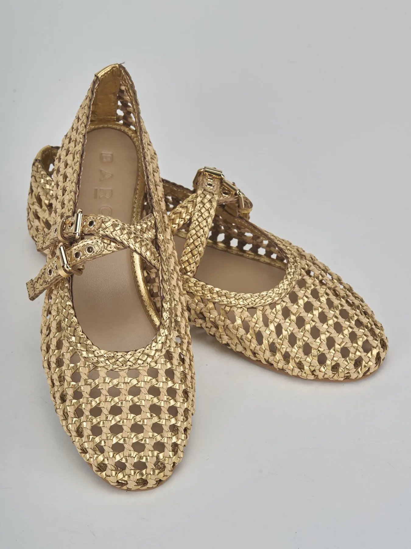 La tomaia è realizzata in morbida pelle laminata intrecciata, con un design bicolor che aggiunge un tocco di raffinatezza.