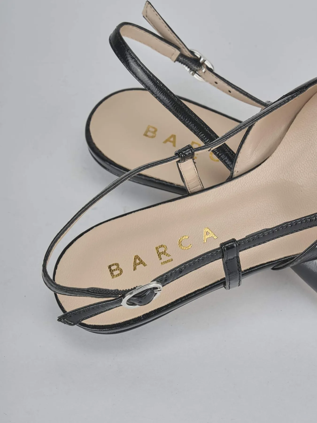 Ballerina tacco 2 cm fondo in cuoio e soletto interno in vera pelle. Tomaia in morbida pelle effetto verniciato, punta sfilata, scollo morbido a ‘U’, fiocco con borchie finali, cinturino con fibbia regolabile e nuovissimo tacco a cono. Perfetto sia con un paio di jeans che con una gonna.