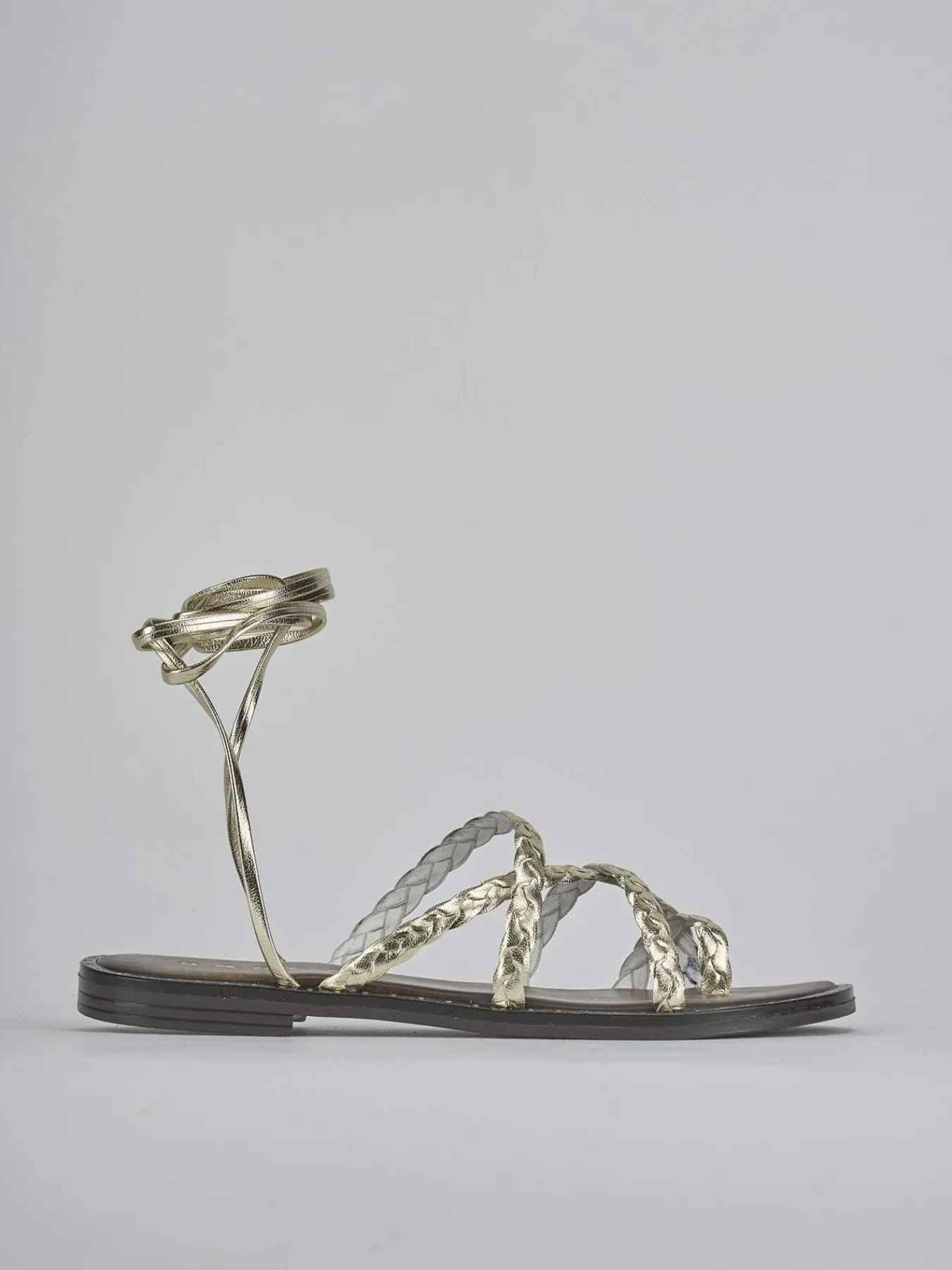 Con un tacco di 1 cm, questi sandali laminati oro sono l’ideale per un look chic-cool, adatto a ogni occasione.